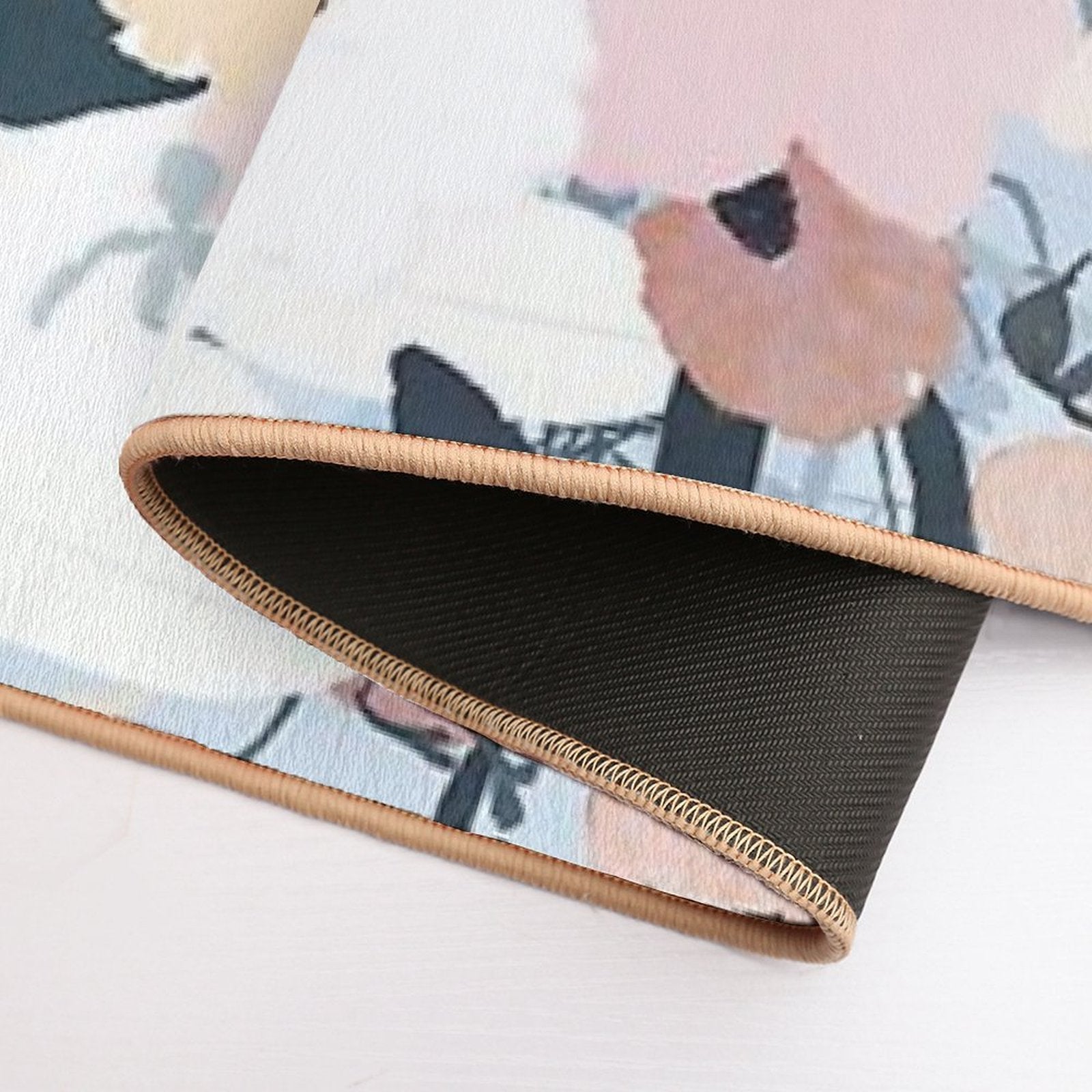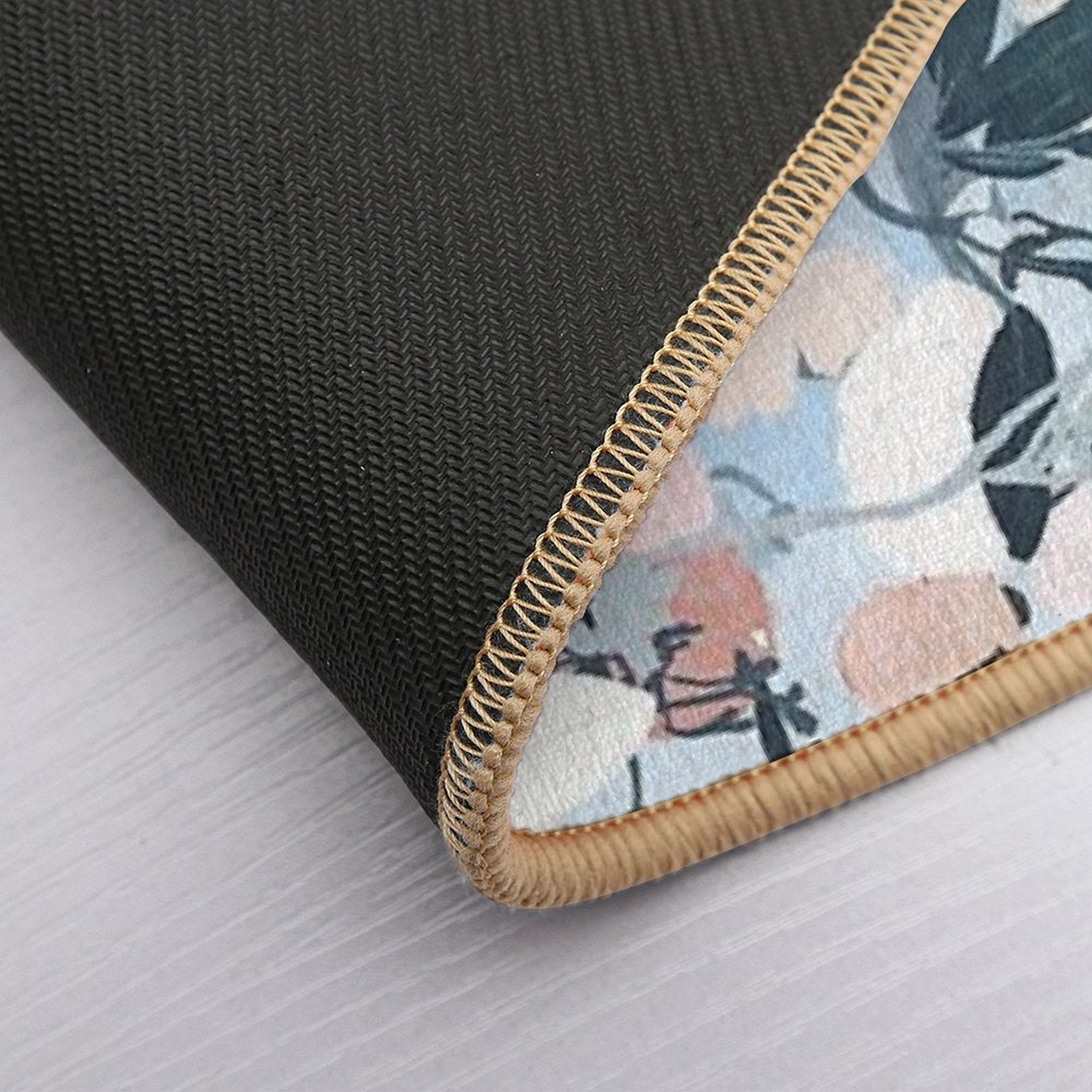 - Non-slip rubber backing grips floors securely, ideal for Pink White Floral Watercolor Blue Design Mat placements on tiles, wood, or marble.