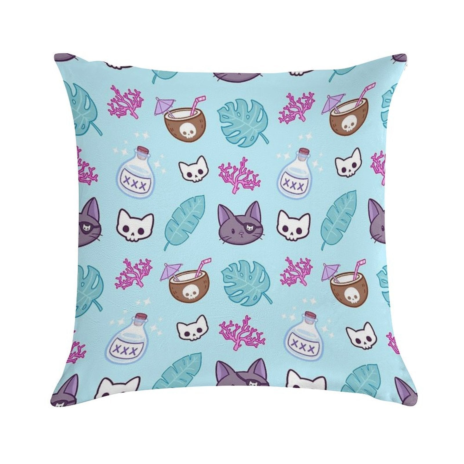Pirate Cat Turquoise Nikury Soft Short Plush Fabric Throw Pillow
