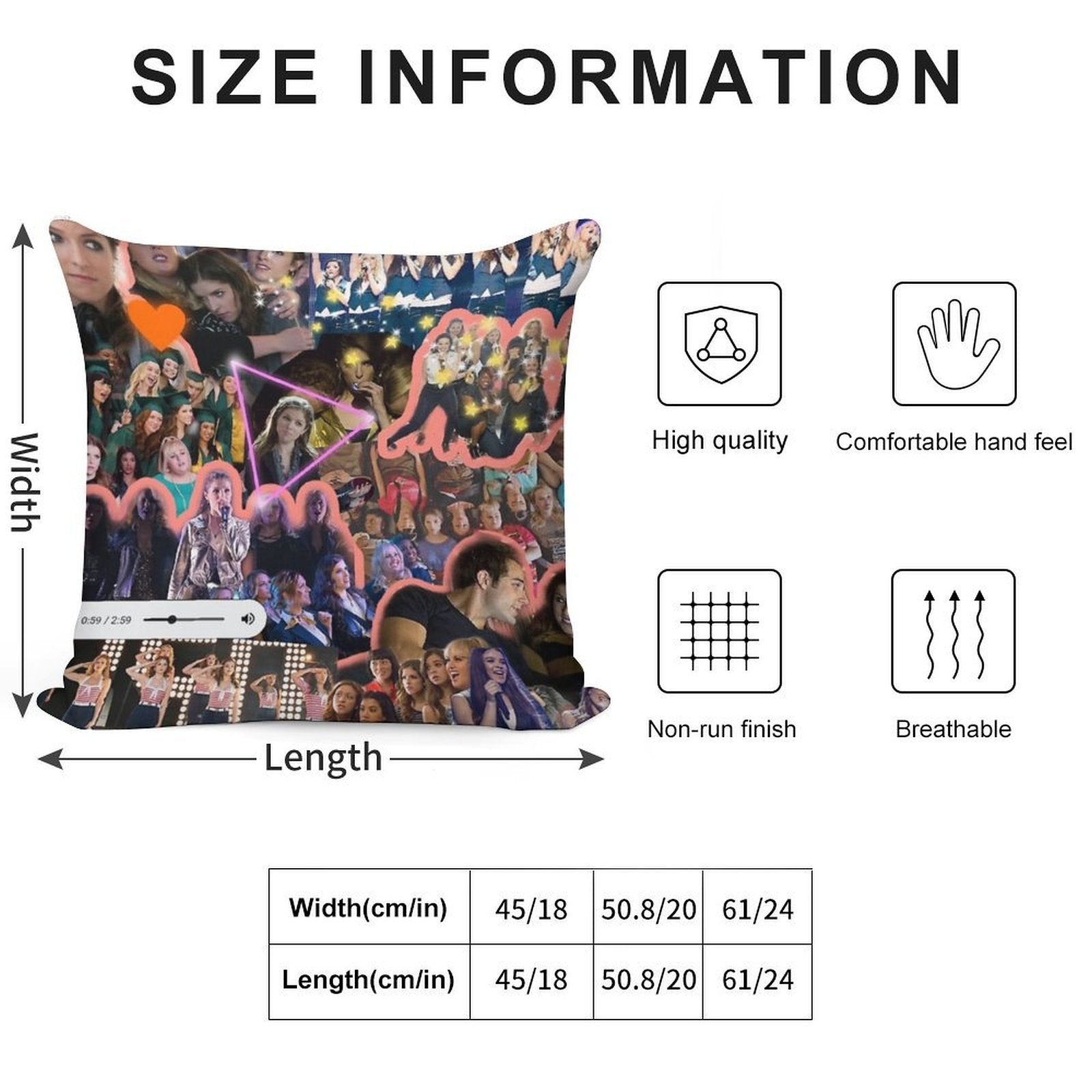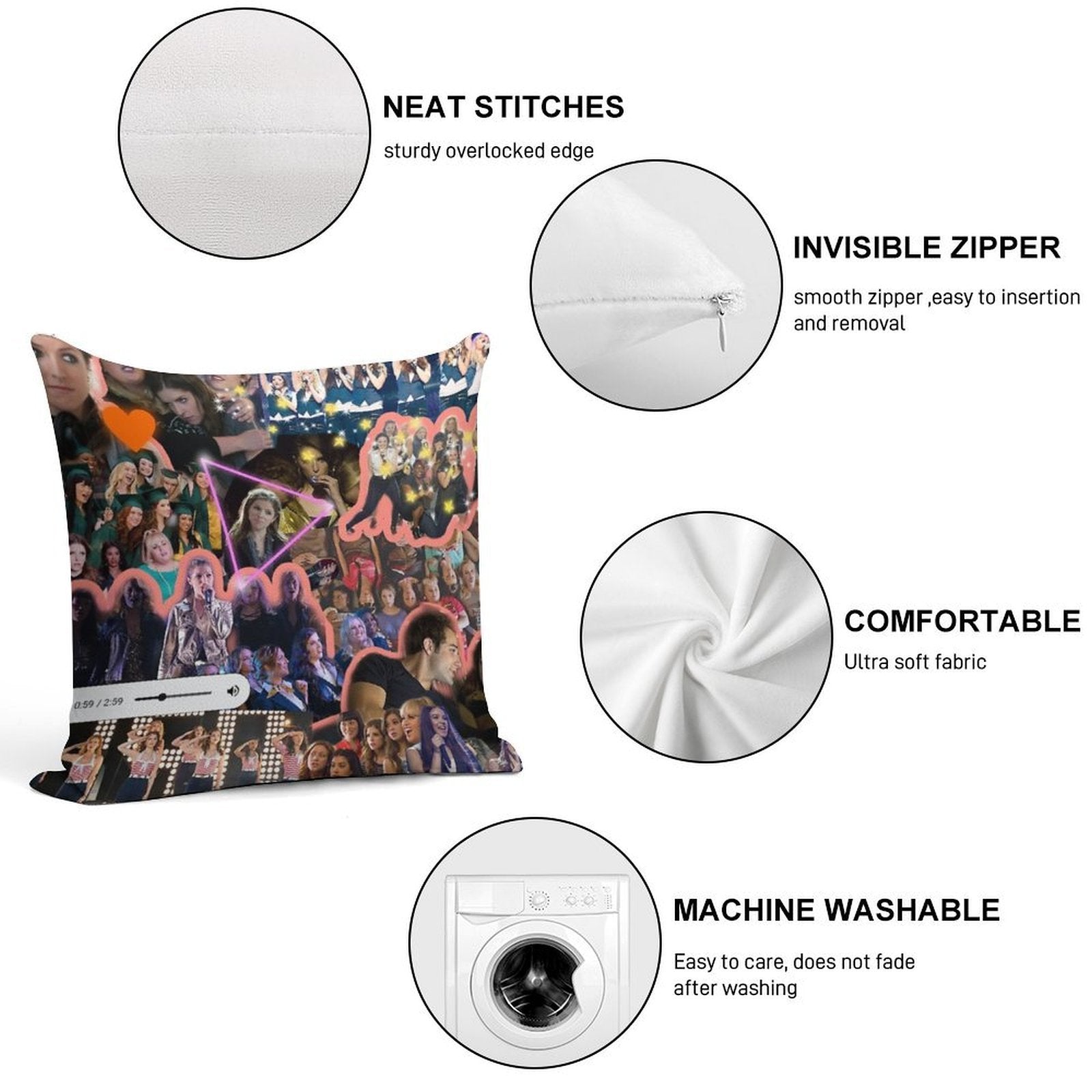 - Reinforced stitching along the edges prevents fraying and extends the life of your Pitch Perfect Collage Pillowcase.