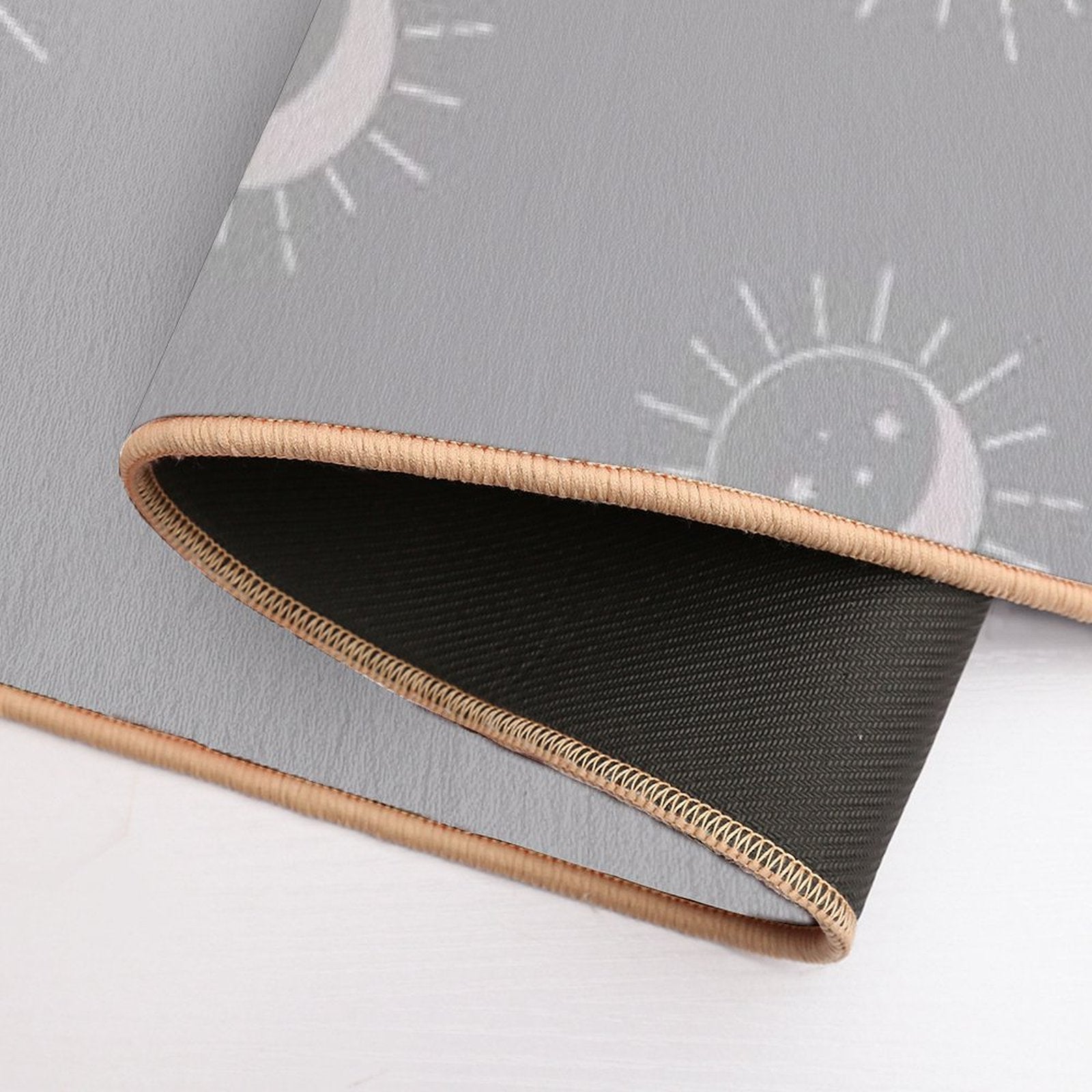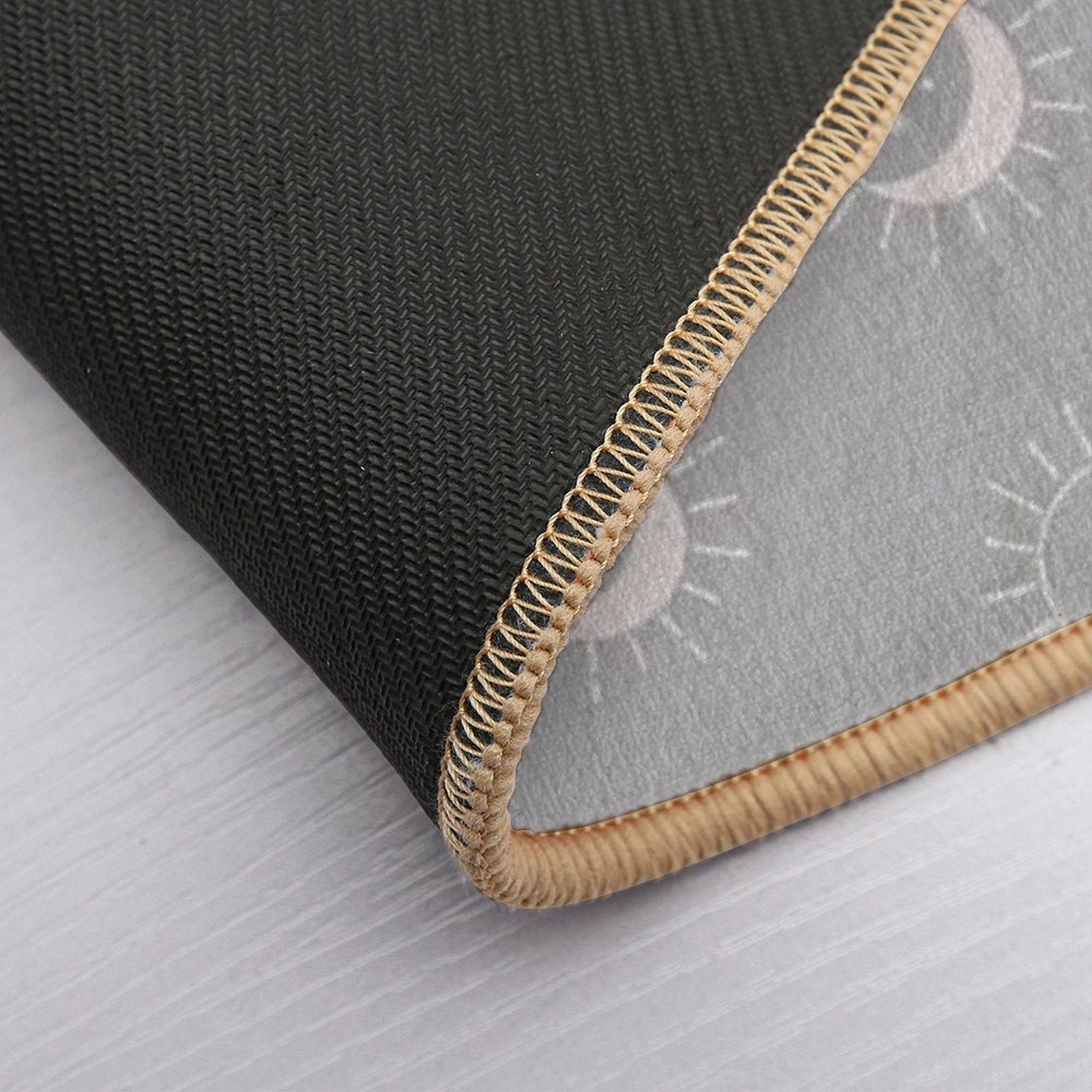 - Non-slip rubber backing grips floors securely, ideal for Pretty Sun And Moon Pattern Soft Aesthetic In Muted Colors Gray Taupe Mat placements on tiles, wood, or marble.