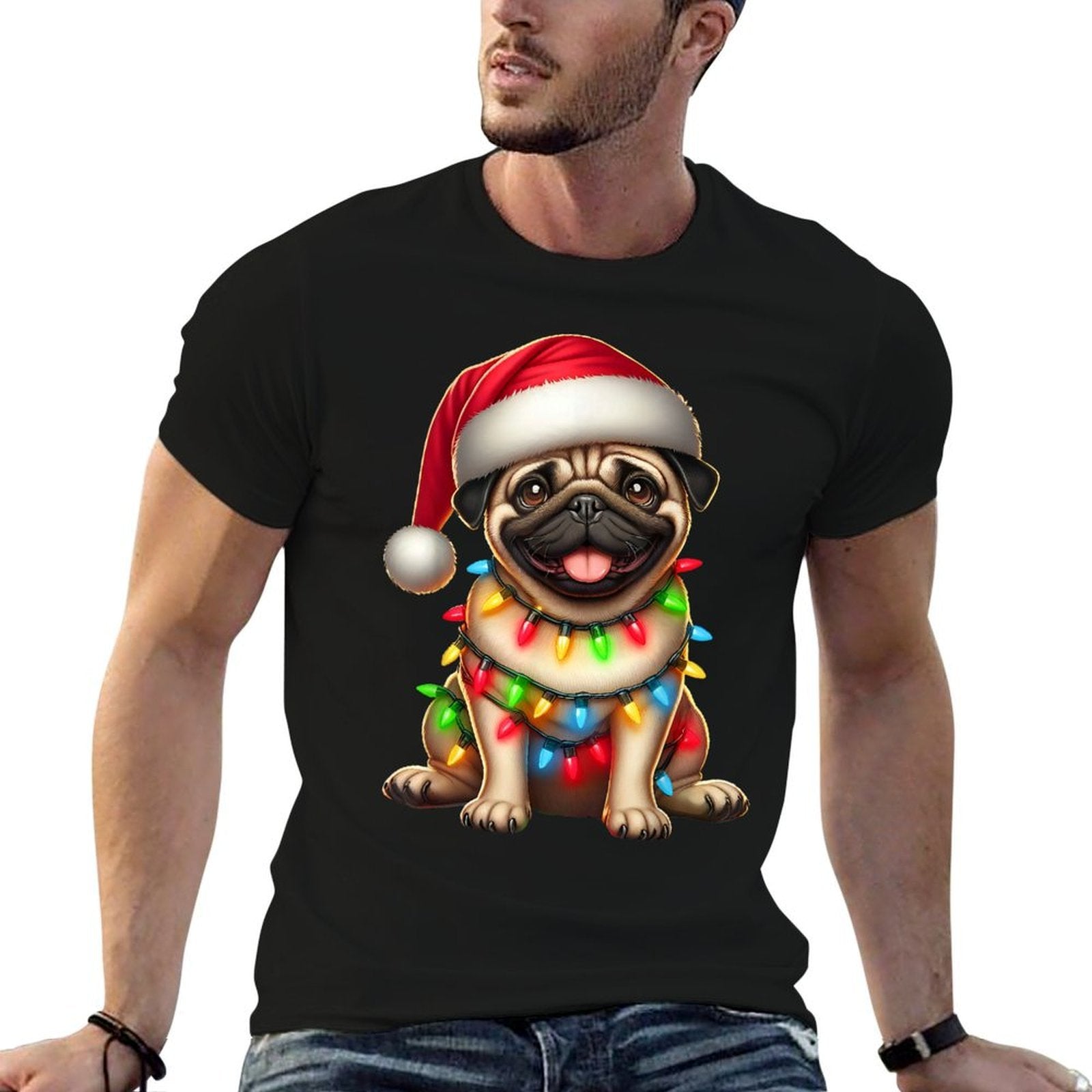 Pug Dog Christmas Tree Lights Santa Xmas Pajama Dog Lover High-quality Stitching T-Shirt