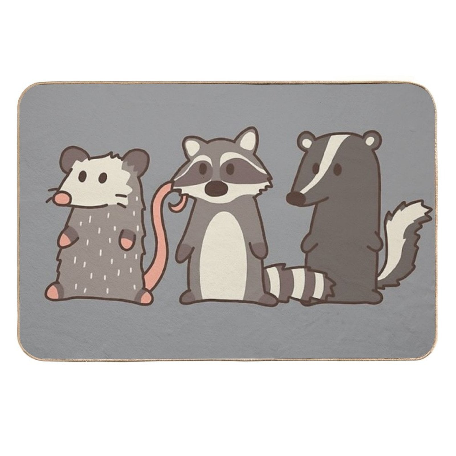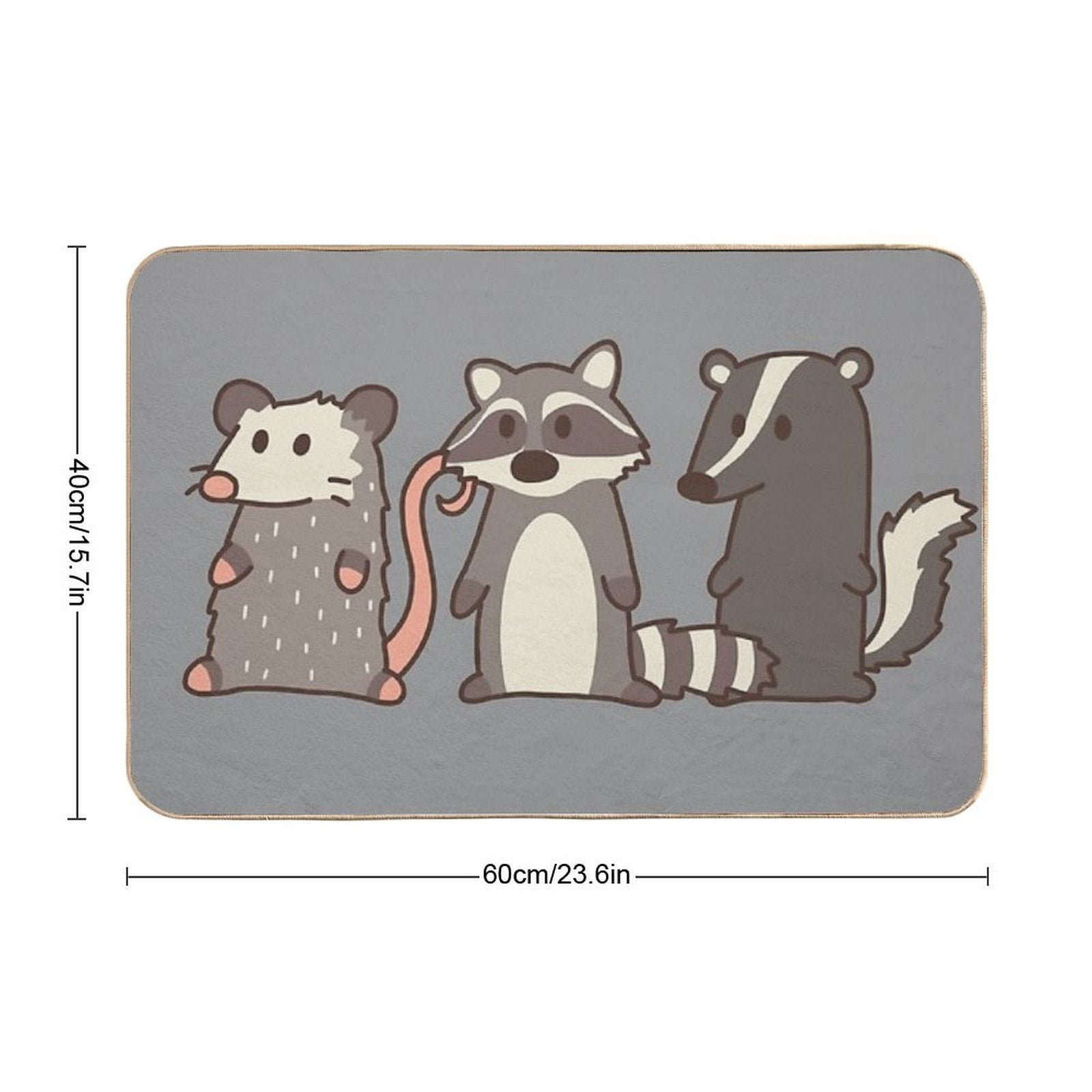 - Use as a vanity rug, guest suite accent, or mudroom defender – the Raccoon, Opossum & Skunk Woodland Friends Mat adapts to any space.