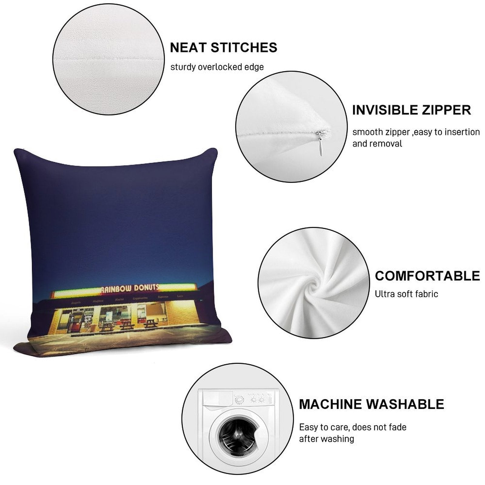 - Reinforced stitching along the edges prevents fraying and extends the life of your Rainbow Donuts. Pillowcase.