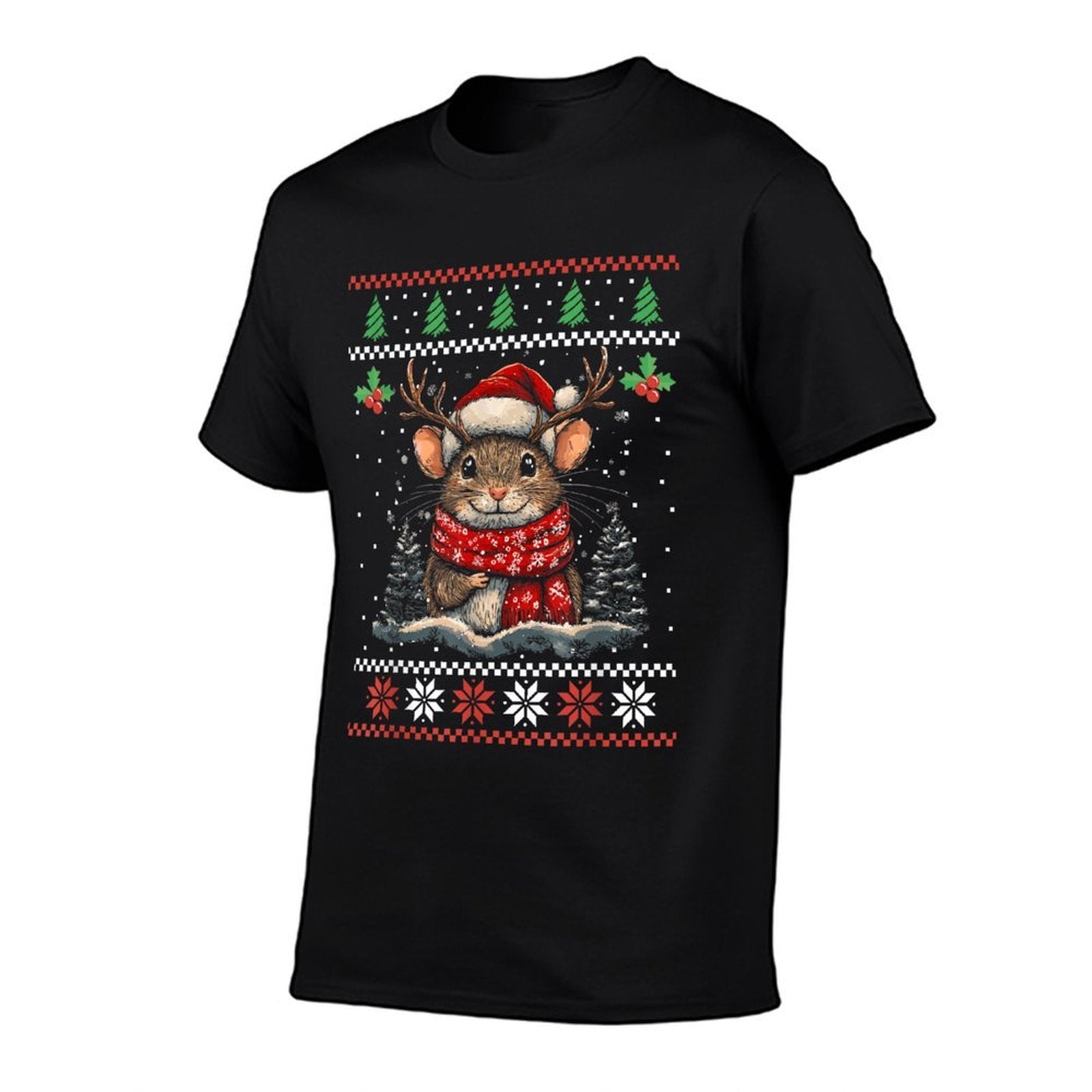 Rat Reindeer Santa Hat Ugly Christmas Sweater Xmas Slim-fit Cut T-Shirt