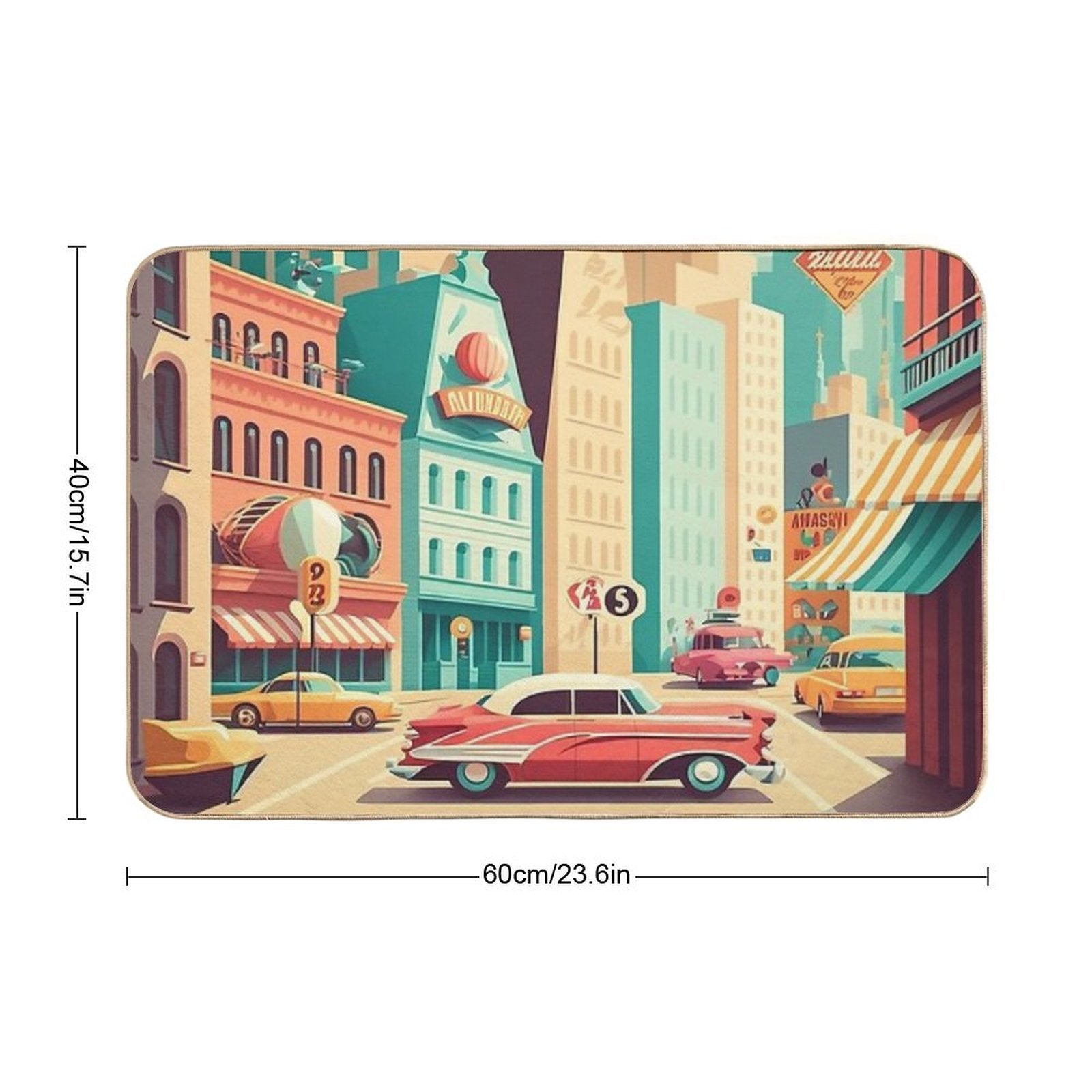 - Use as a vanity rug, guest suite accent, or mudroom defender – the Retro Cityscape 50s #2 Mat adapts to any space.