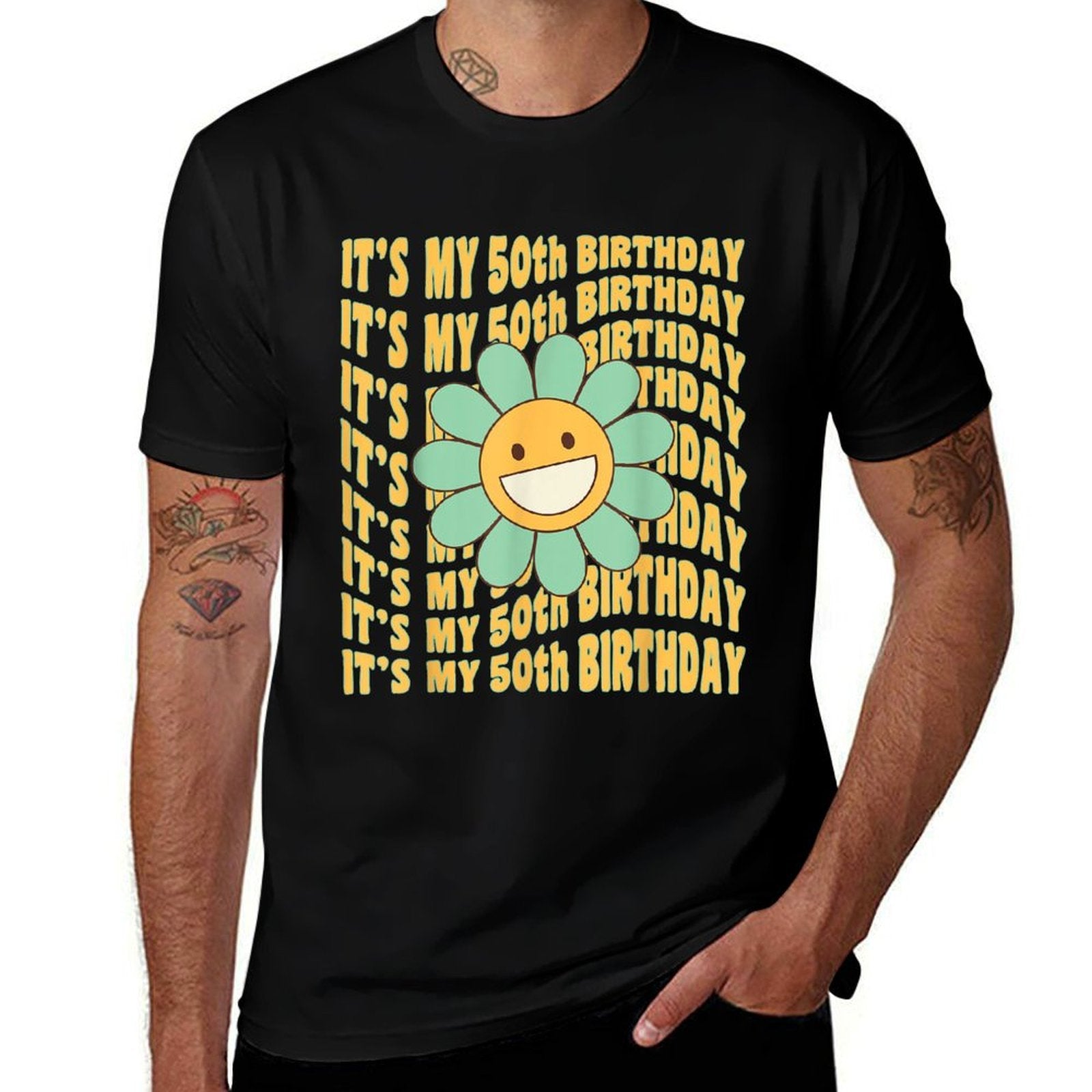 - Avoid bleach to preserve the Retro Groovy It's My 50th Birthday Wavy Flower T-shirt’s bold graphics and cotton integrity.