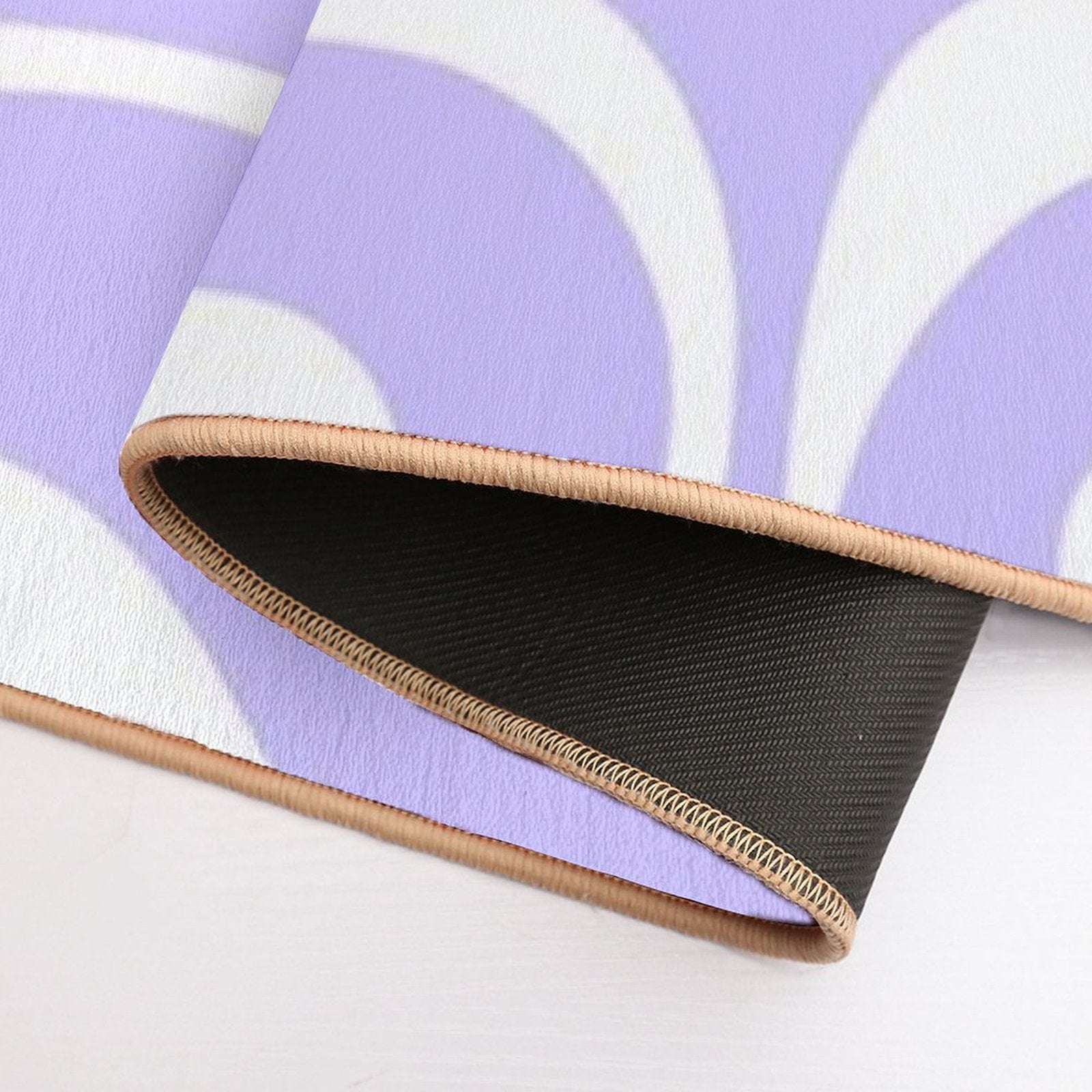 - Non-slip rubber backing grips floors securely, ideal for Retro Modern Liquid Swirl Abstract Pattern Square in Light Purple And White Mat placements on tiles, wood, or marble.