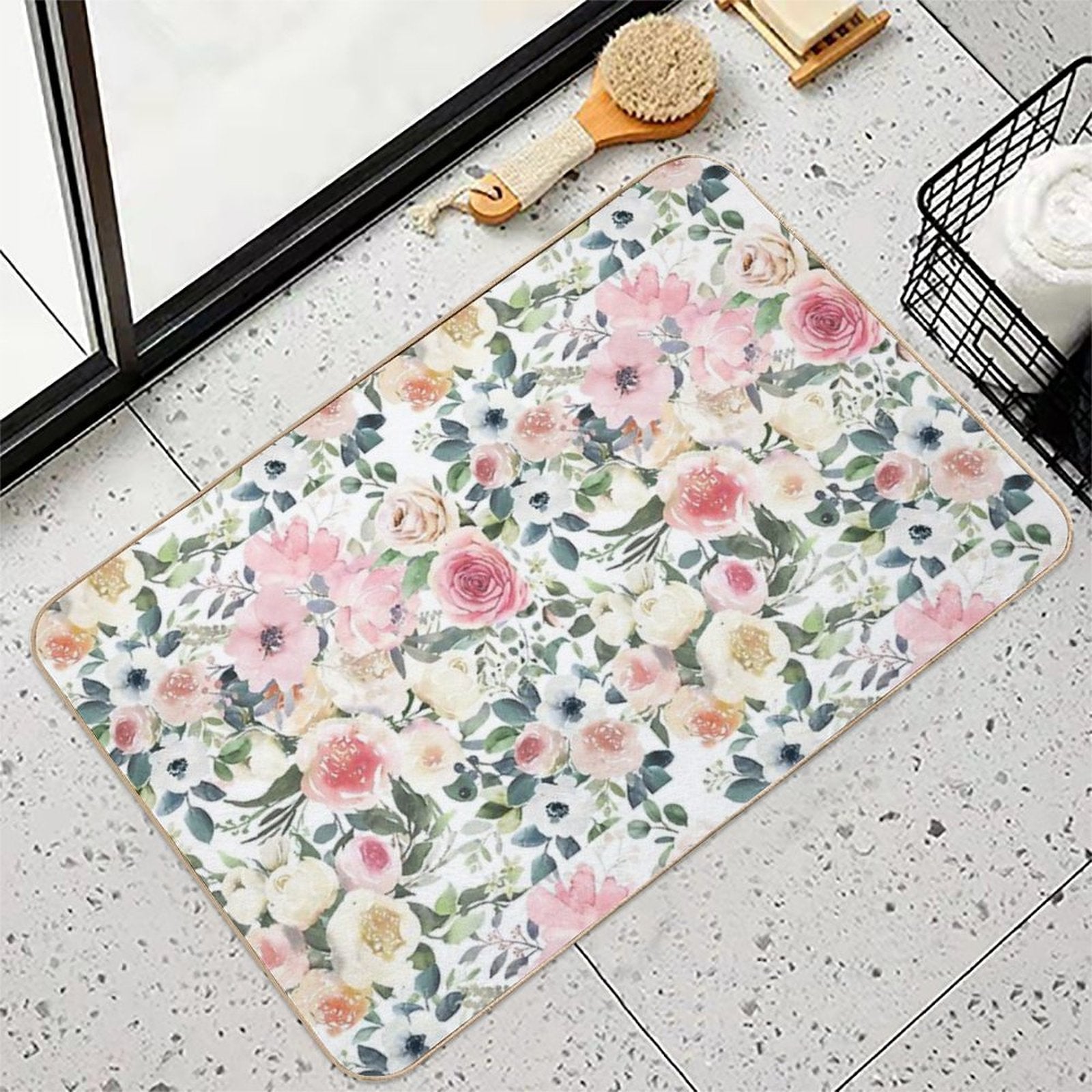 Romantic Watercolor Flowers Multi-Purpose Bath Mat