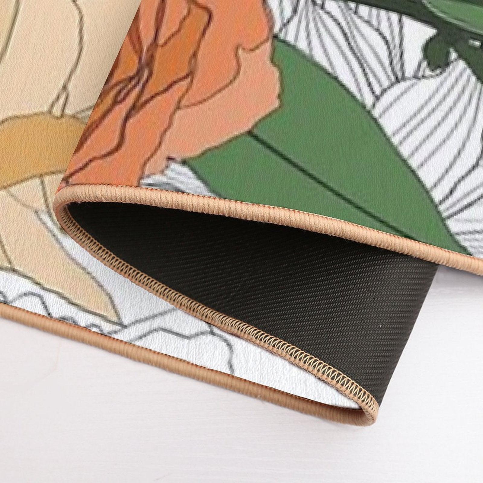 - Non-slip rubber backing grips floors securely, ideal for Seamless Delicate Pattern with Spring Line Flowers. Bright Spring Roses, Tulips Illustration. Mat placements on tiles, wood, or marble.