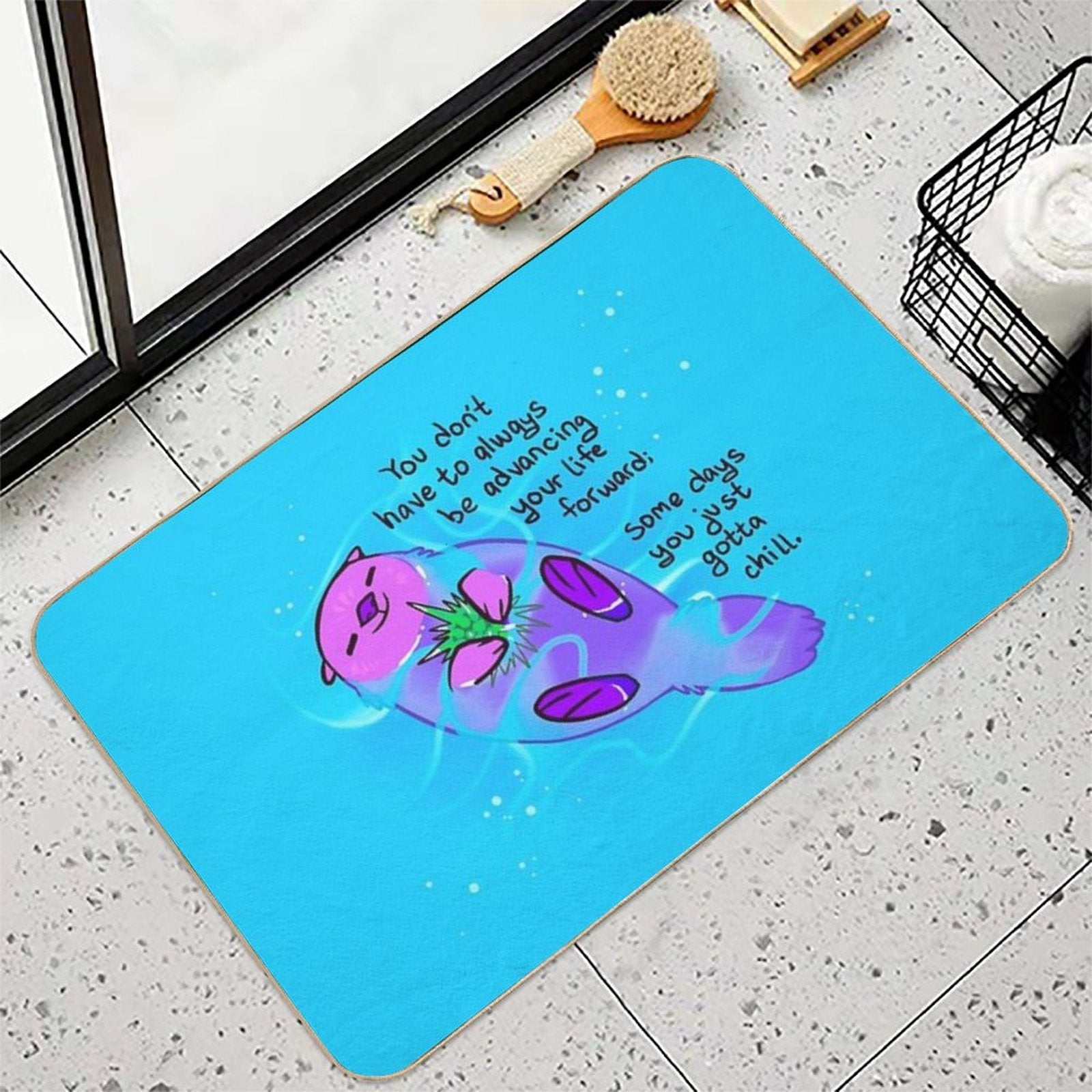 - Rapid-drying flannel soaks up water 3x faster than standard mats, preventing puddles in Some Days You Just Gotta Chill Purple Otter bathrooms or poolside areas.