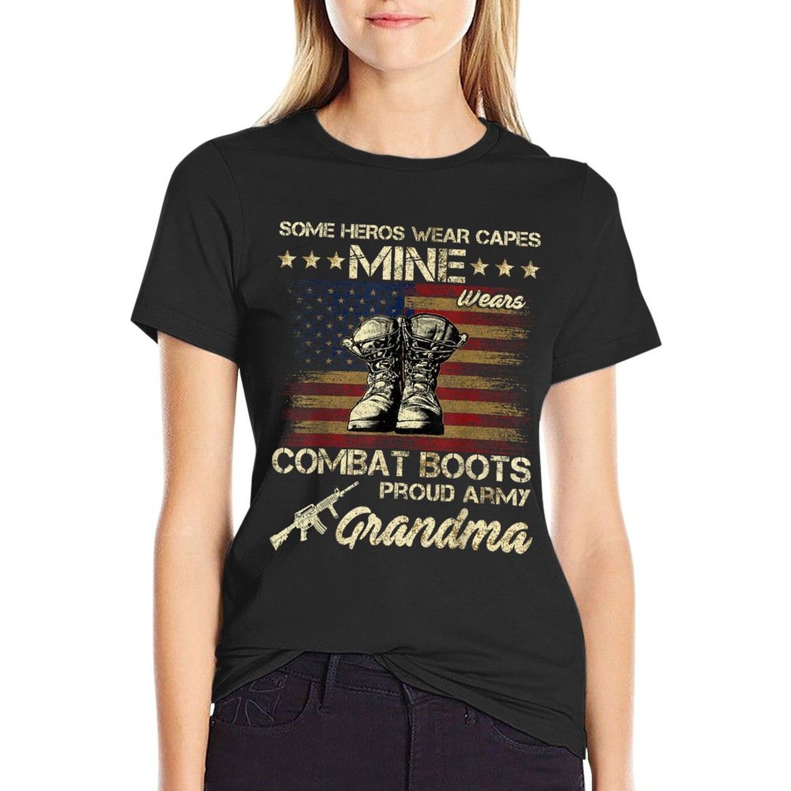 Why Choose Some Heros Wear Capes Mine Wears Combat Boots Army Grandma T-Shirt?