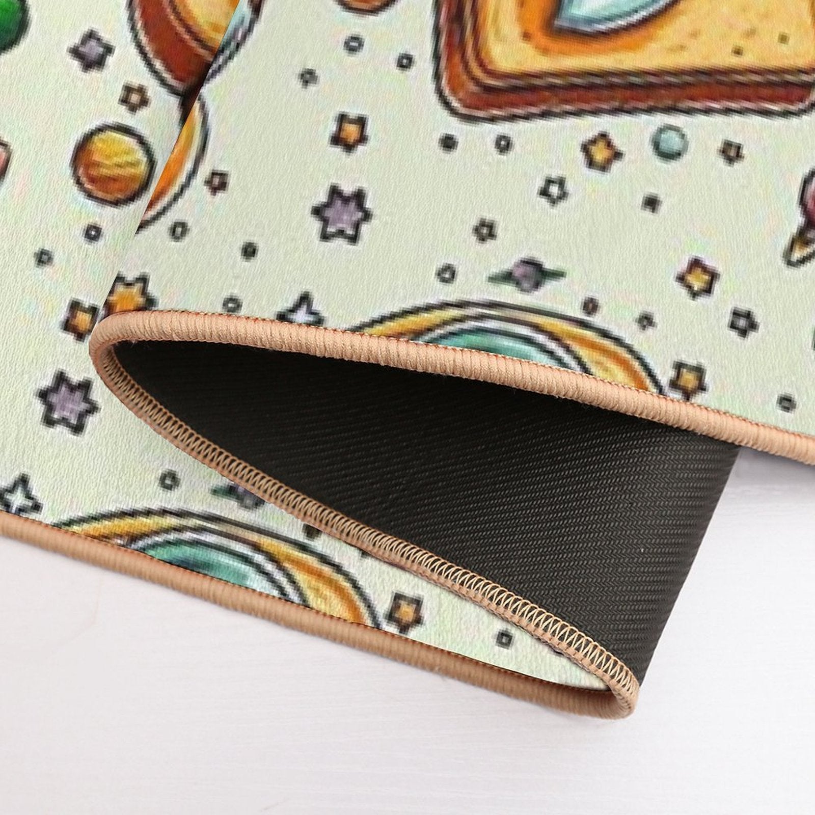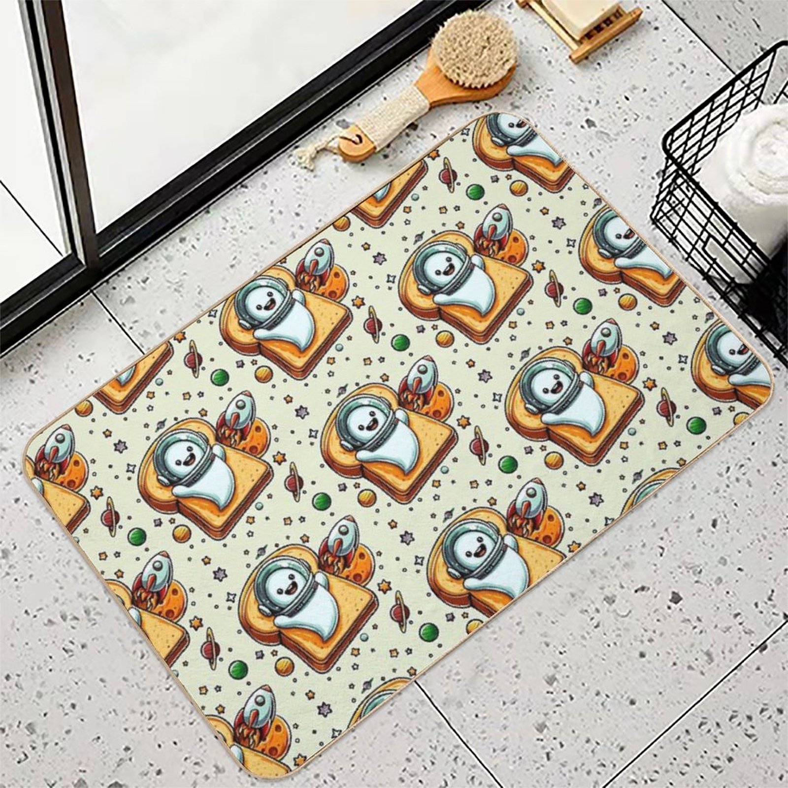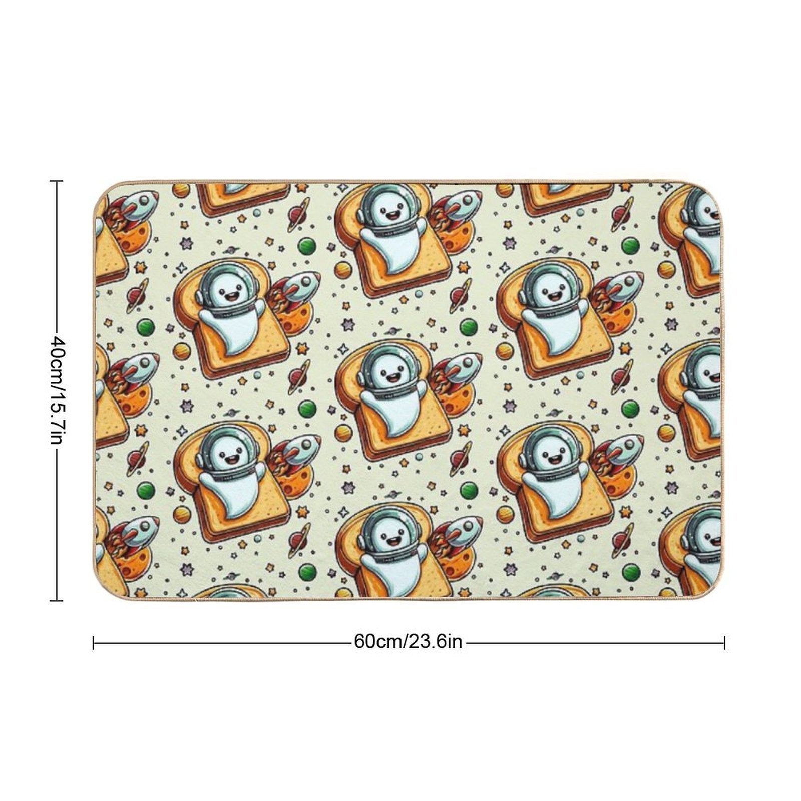- Non-slip rubber backing grips floors securely, ideal for Space Ghost on Toast Mat placements on tiles, wood, or marble.