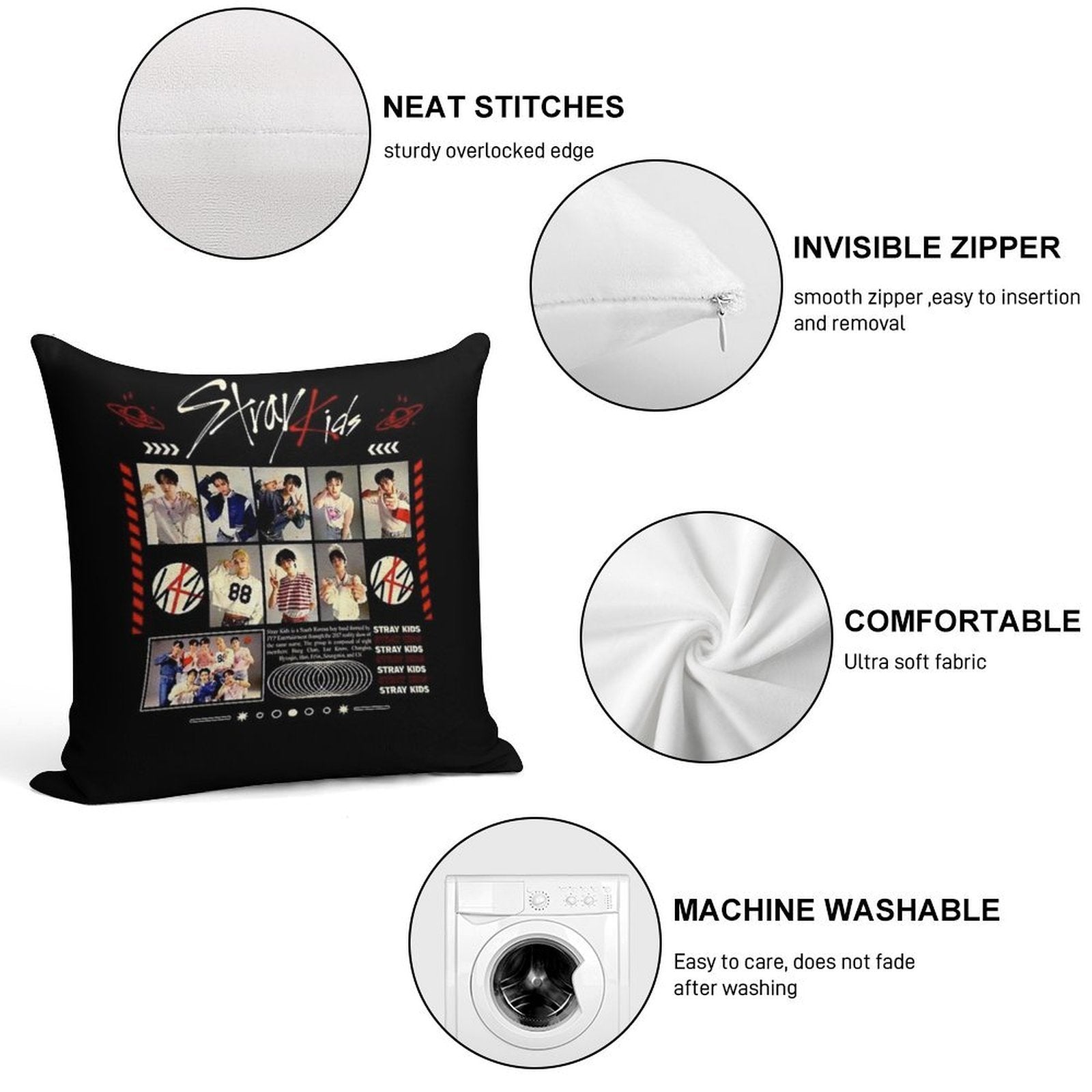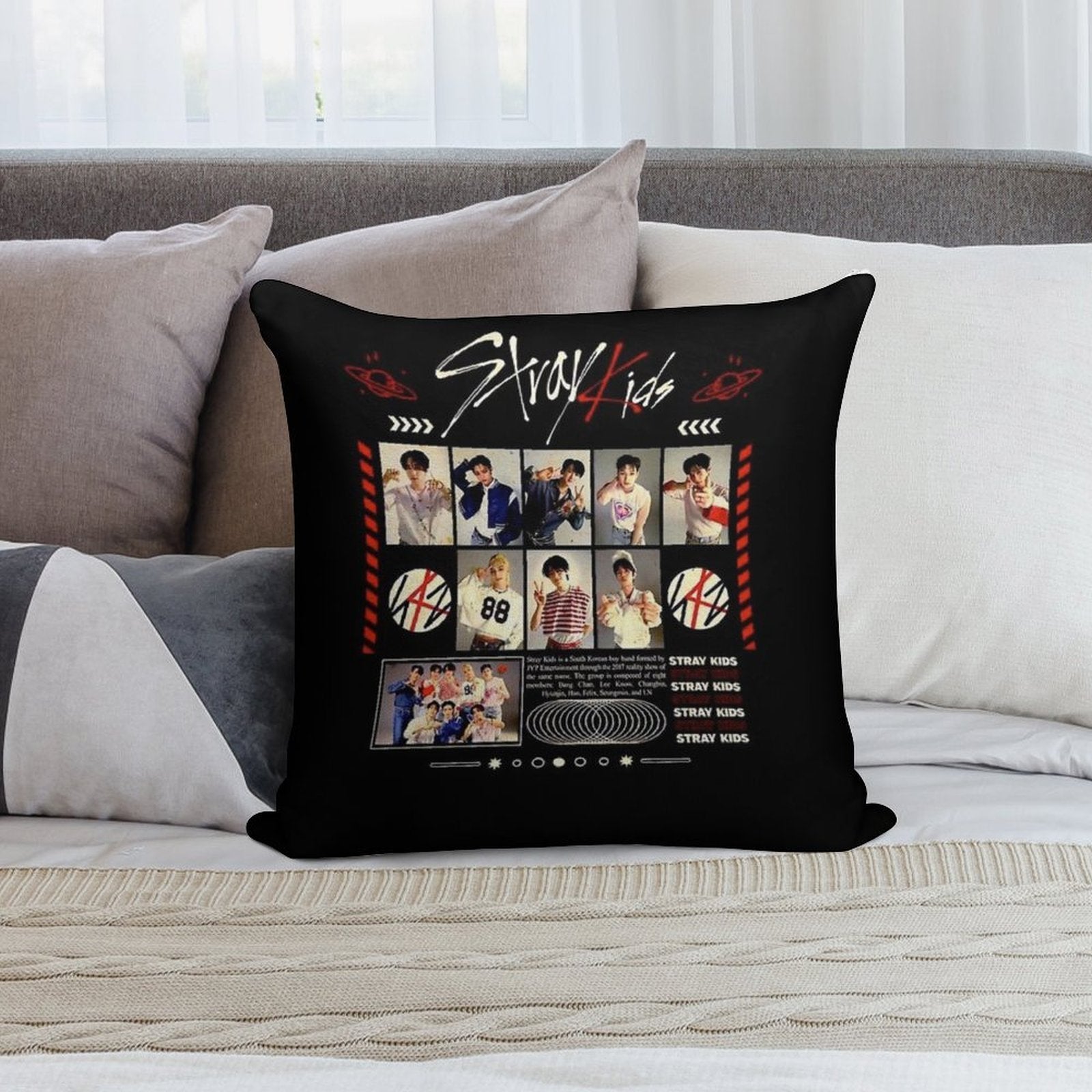 - Reinforced stitching along the edges prevents fraying and extends the life of your Stray Kids Concert Tour T-shirt Kpop Boy Group Bang Chan Lee Know Changbin Hyunjin Han Felix Seungmin Jeongin Pillowcase.
