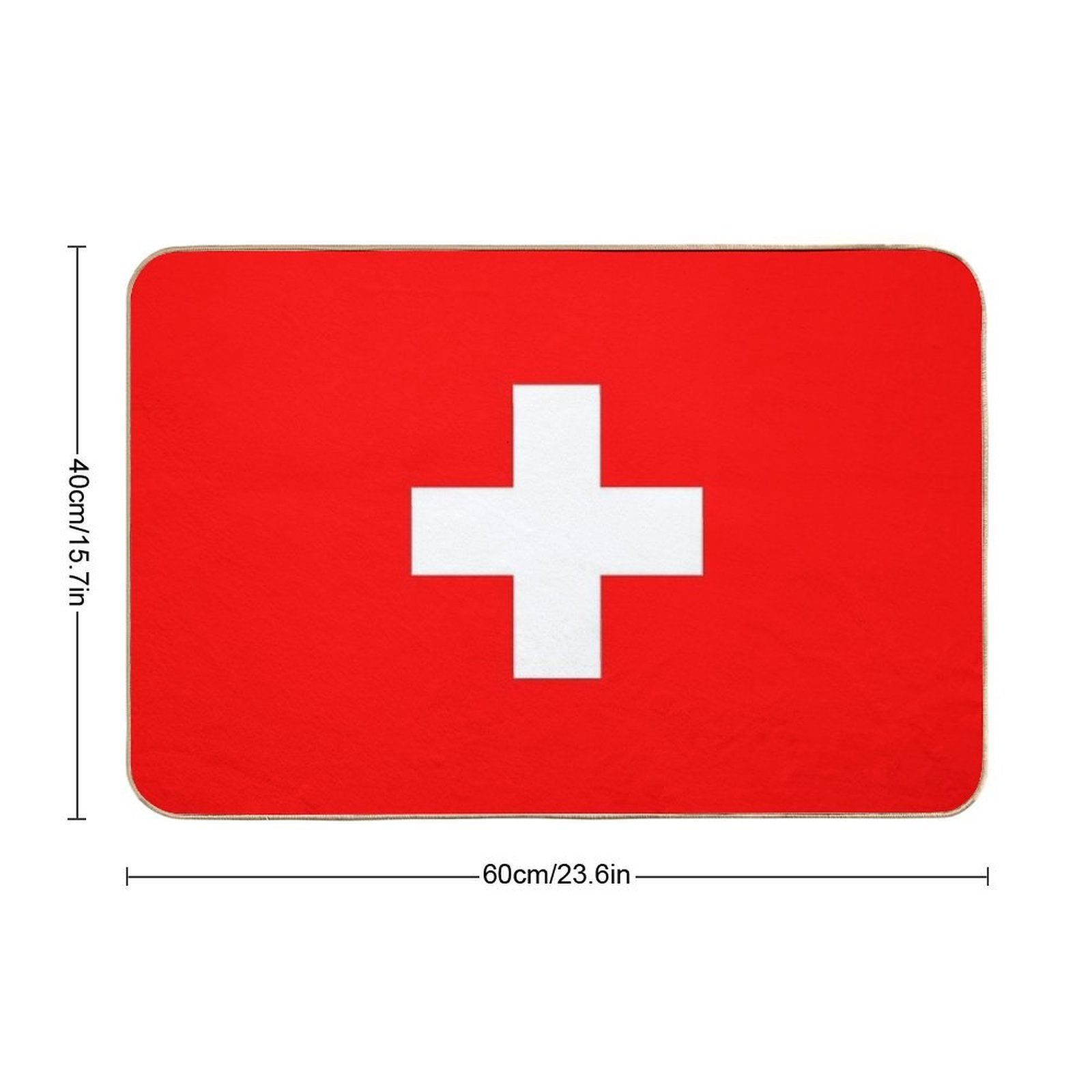 - Non-slip rubber backing grips floors securely, ideal for Swiss National Day - Switzerland Flag #6 Mat placements on tiles, wood, or marble.