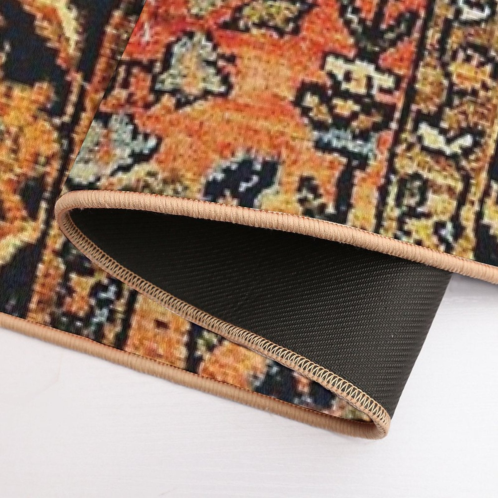 - Non-slip rubber backing grips floors securely, ideal for Tabriz Rug Print With Burnt Orange Field Print Mat placements on tiles, wood, or marble.