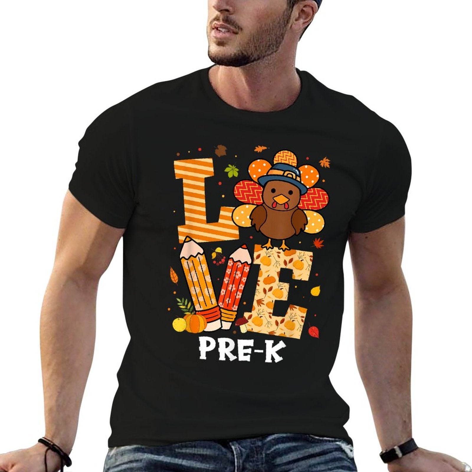 Thanksgiving Love Pre-K Teacher Turkey Autumn Fall for Men Women Girls Kids Odor-resistant T-Shirt