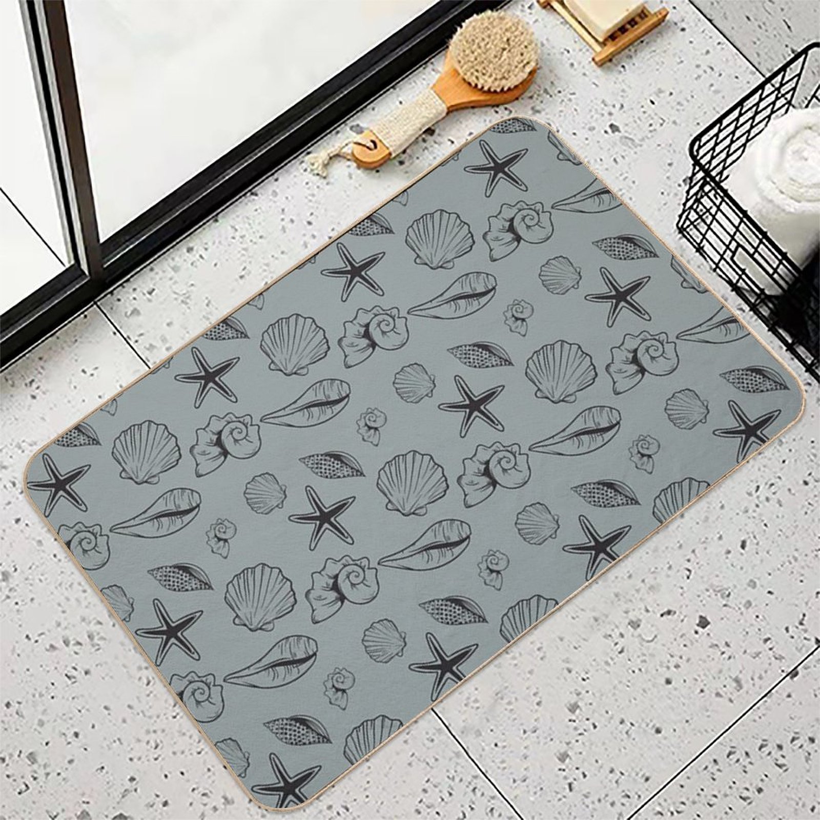 - Non-slip rubber backing grips floors securely, ideal for The Dark Sage Green Shells Mat placements on tiles, wood, or marble.