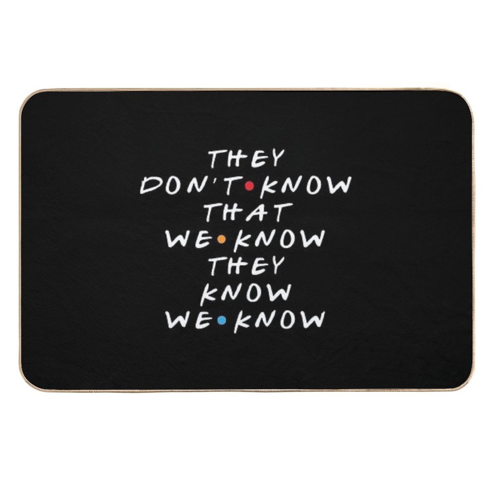 - Non-slip rubber backing grips floors securely, ideal for They Don't Know That We Know They Know Mat placements on tiles, wood, or marble.