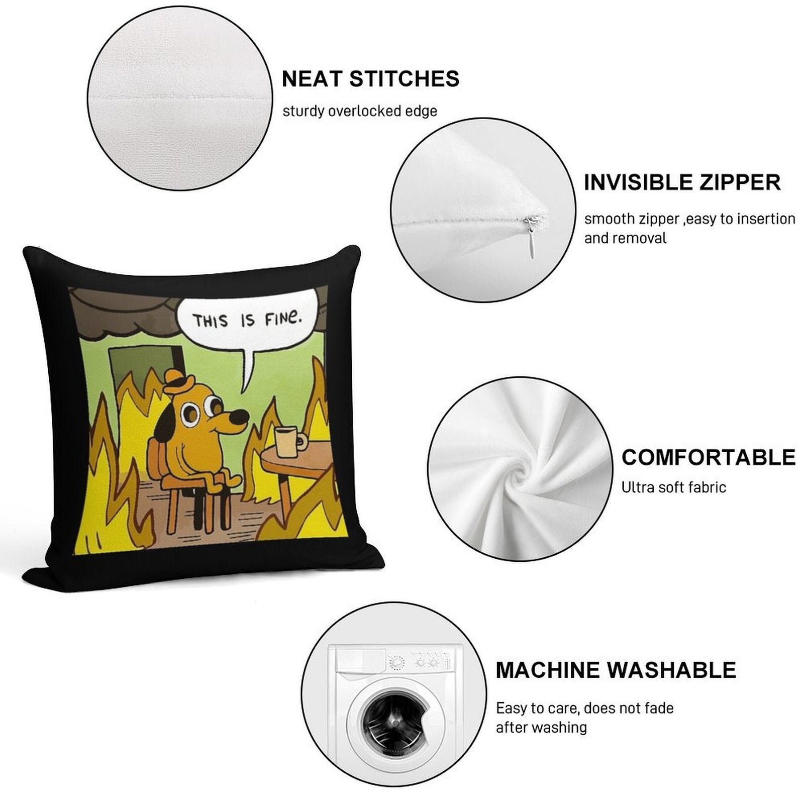 ✔️ Fits Any Style – Neutral tones and plush texture suit all This Is Fine - Funny Meme decors.