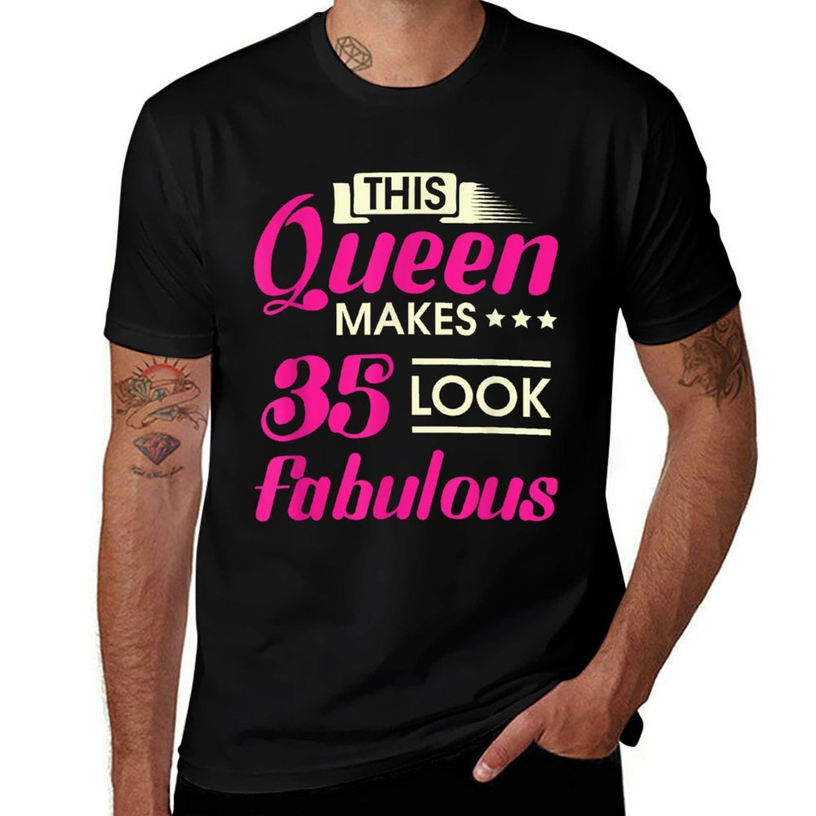 - Avoid bleach to preserve the This Queen Makes 35 Look Fabulous Woman 35th Birthday T-shirt’s bold graphics and cotton integrity.