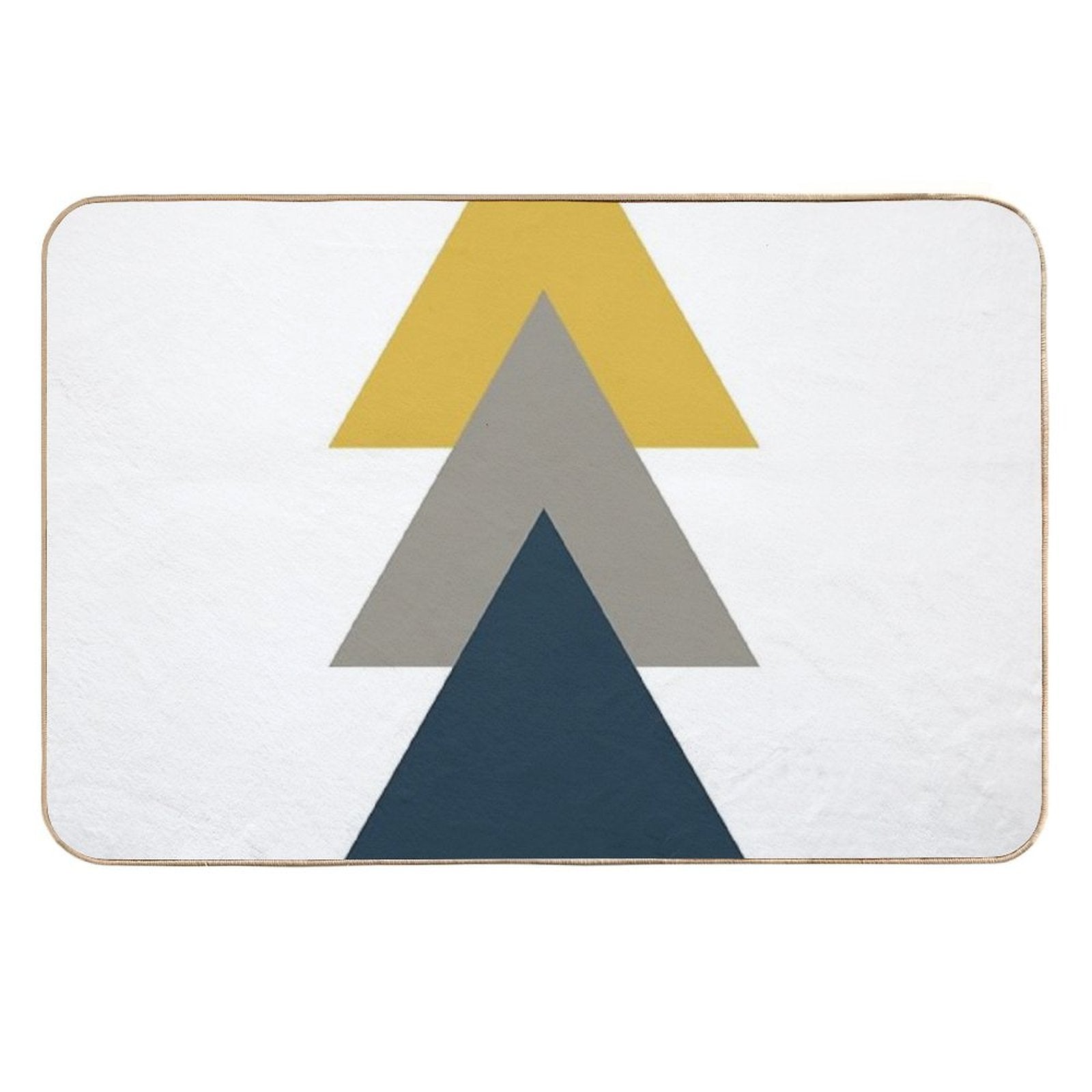 - Use as a vanity rug, guest suite accent, or mudroom defender – the Triangle Trio. Minimalist Geometric in Light Mustard Yellow, White, Grey, And Navy Blue Mat adapts to any space.