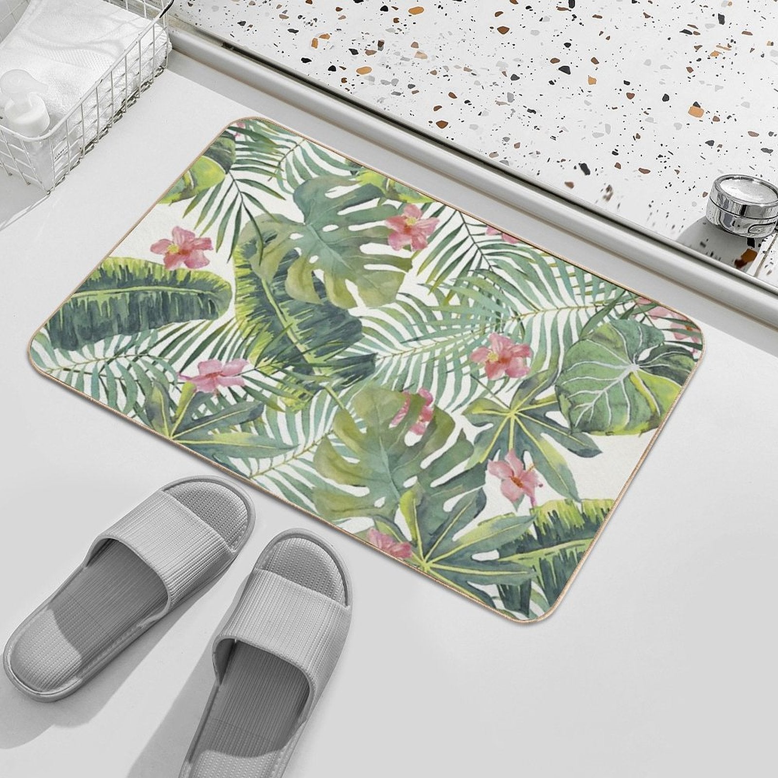 Tropical Leaves Pattern Easy To Clean Bath Mat