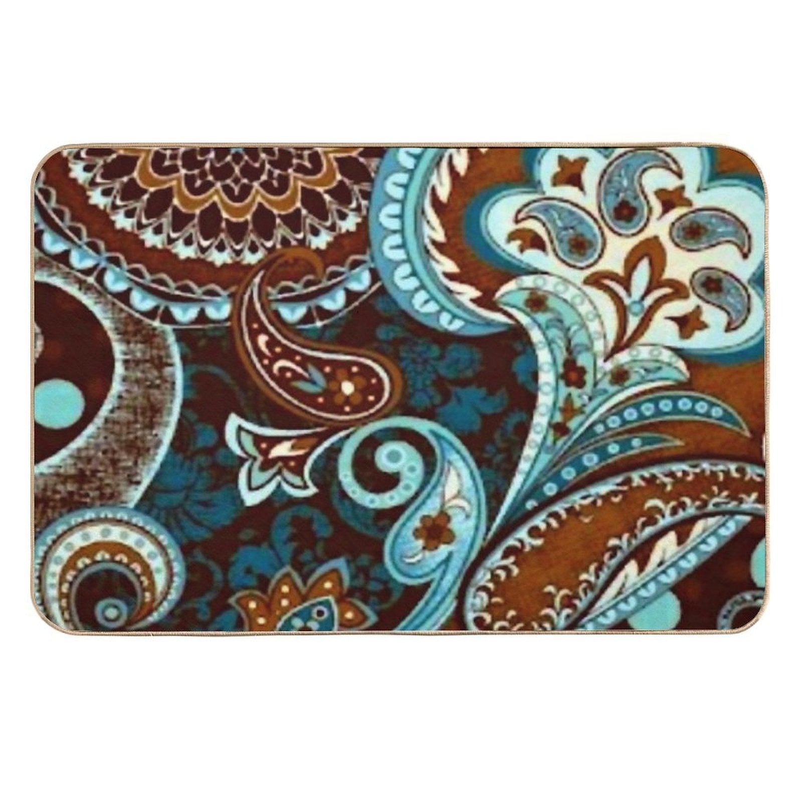 - Non-slip rubber backing grips floors securely, ideal for Turquoise Brown Vintage Paisley Mat placements on tiles, wood, or marble.