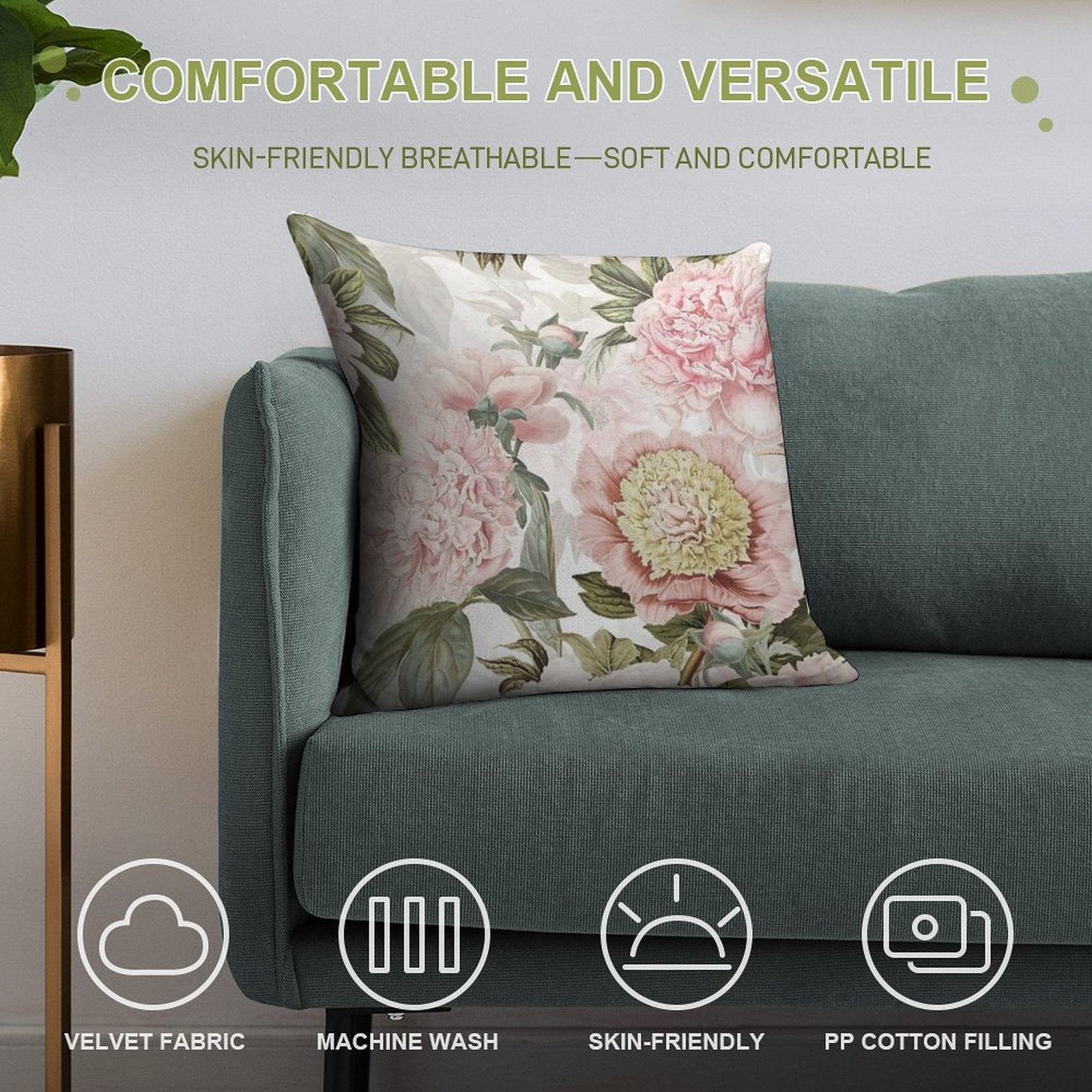 Vintage Botanical Blush Peony Flowers Botanical Garden Pattern Soft Style Accent Throw Pillow