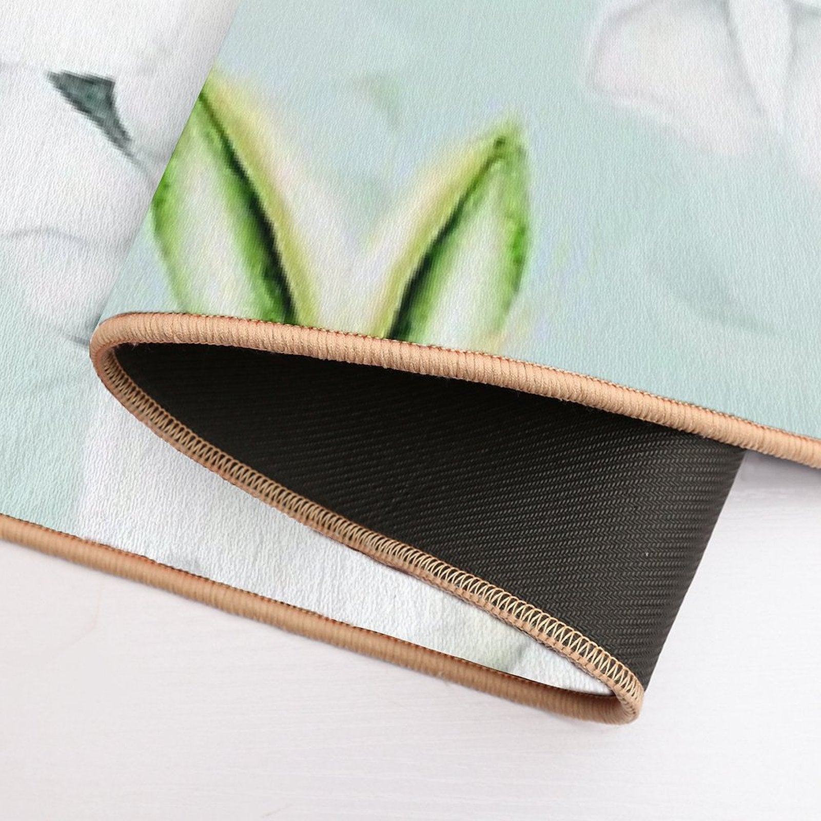 - Non-slip rubber backing grips floors securely, ideal for Vintage Magnolias Mint Botanical Garden Pattern Mat placements on tiles, wood, or marble.