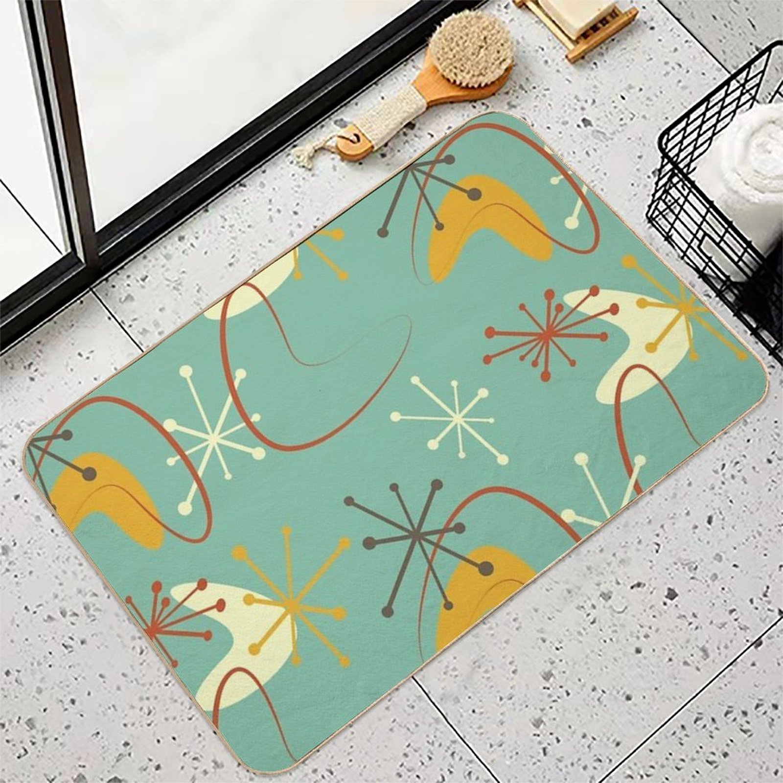- Rapid-drying flannel soaks up water 3x faster than standard mats, preventing puddles in Vintage Retro 1950s Atomic Starburst Boomerangs Green Harvest Gold Rust bathrooms or poolside areas.