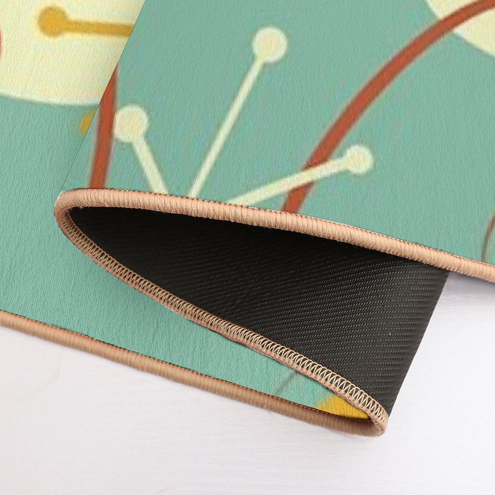 - Non-slip rubber backing grips floors securely, ideal for Vintage Retro 1950s Atomic Starburst Boomerangs Green Harvest Gold Rust Mat placements on tiles, wood, or marble.