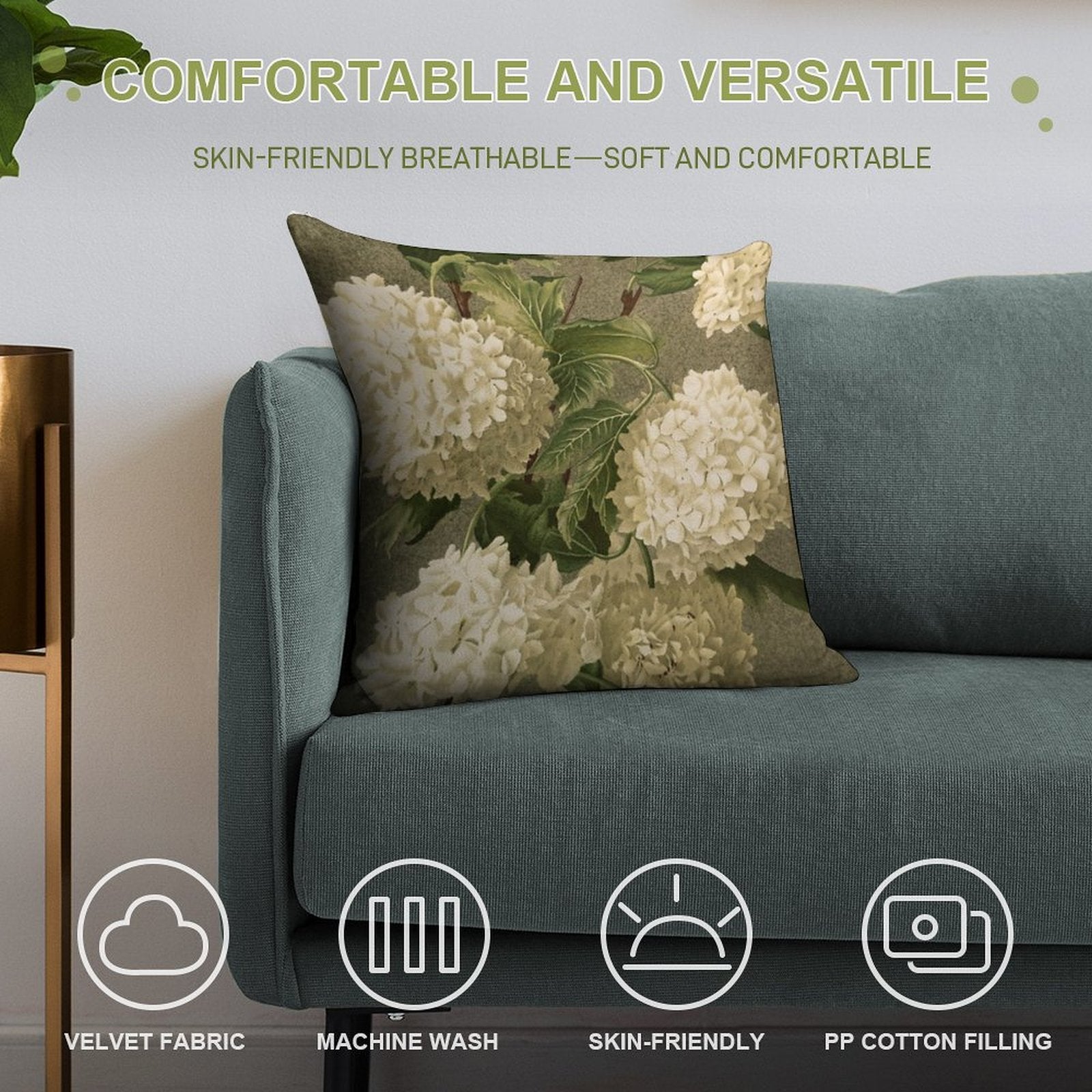Vintage Victorian White Hydrangea Floral Soft Fade-Resistant Throw Pillow