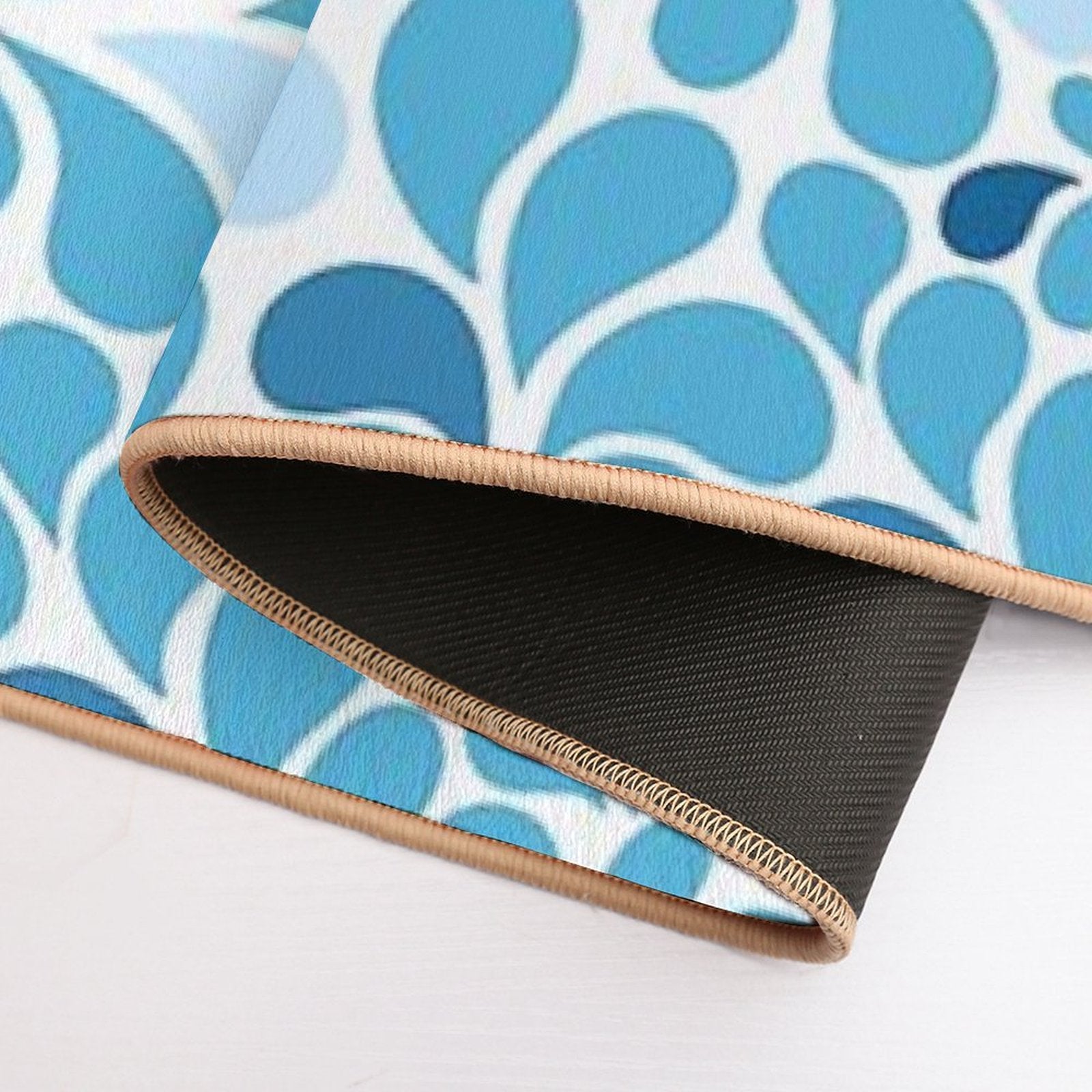 - Non-slip rubber backing grips floors securely, ideal for Water Drops Flourish Pattern, Ornamental Style Seamless Pattern, Mat placements on tiles, wood, or marble.