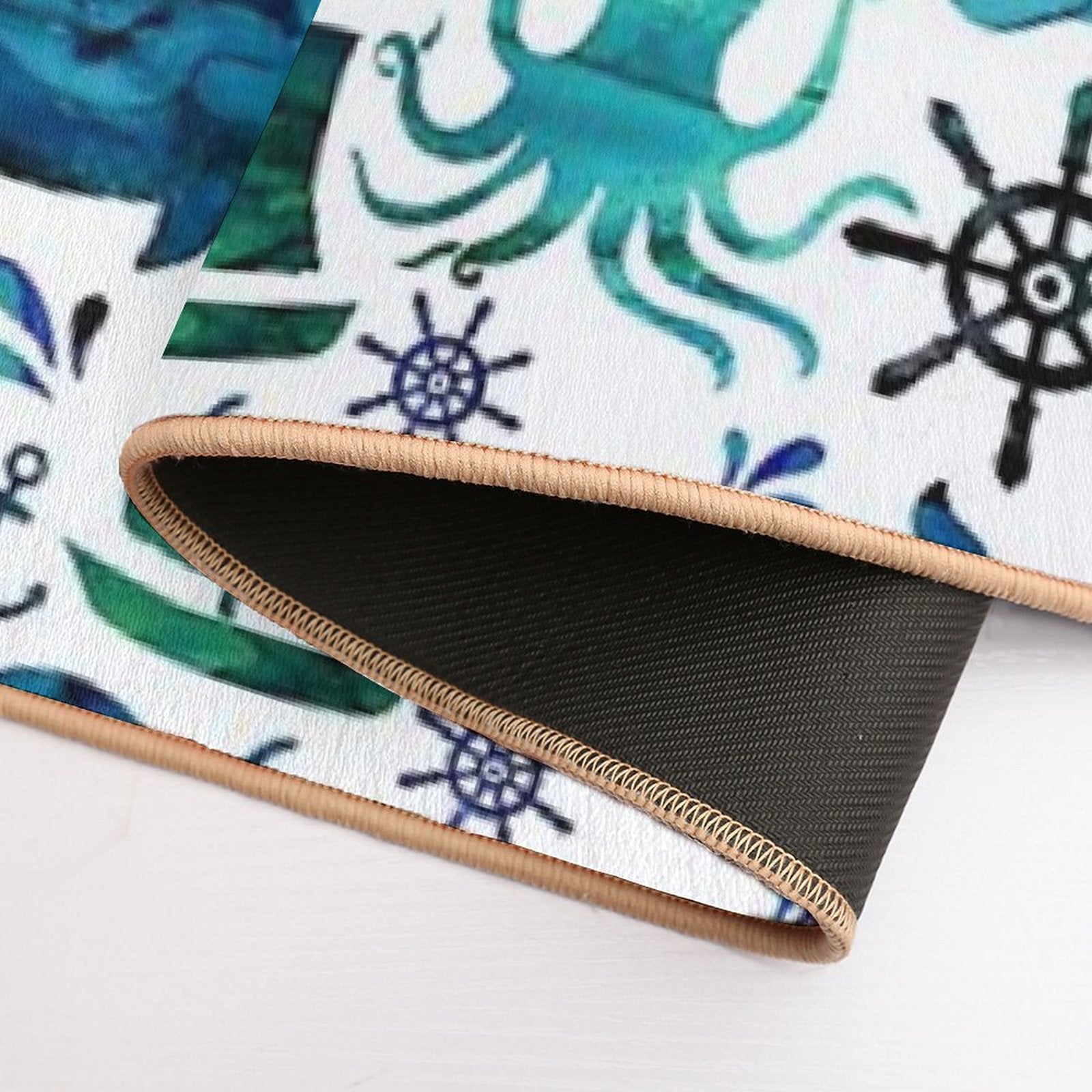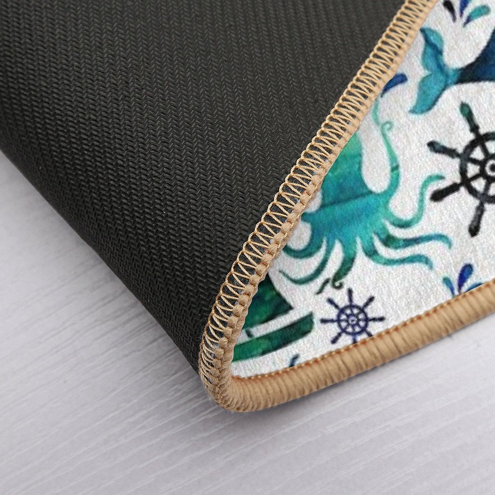 - Non-slip rubber backing grips floors securely, ideal for Watercolor Ocean Nautical Whale Octopus Mat placements on tiles, wood, or marble.