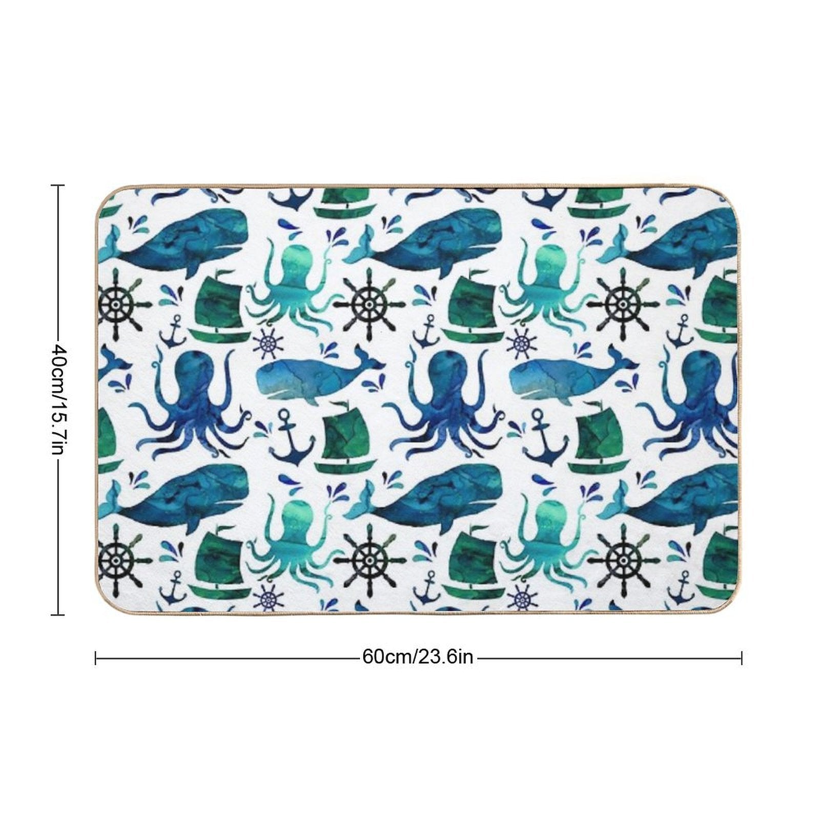 Secure Your Watercolor Ocean Nautical Whale Octopus Mat Today – [Shop Now] & Defend Floors in Style!