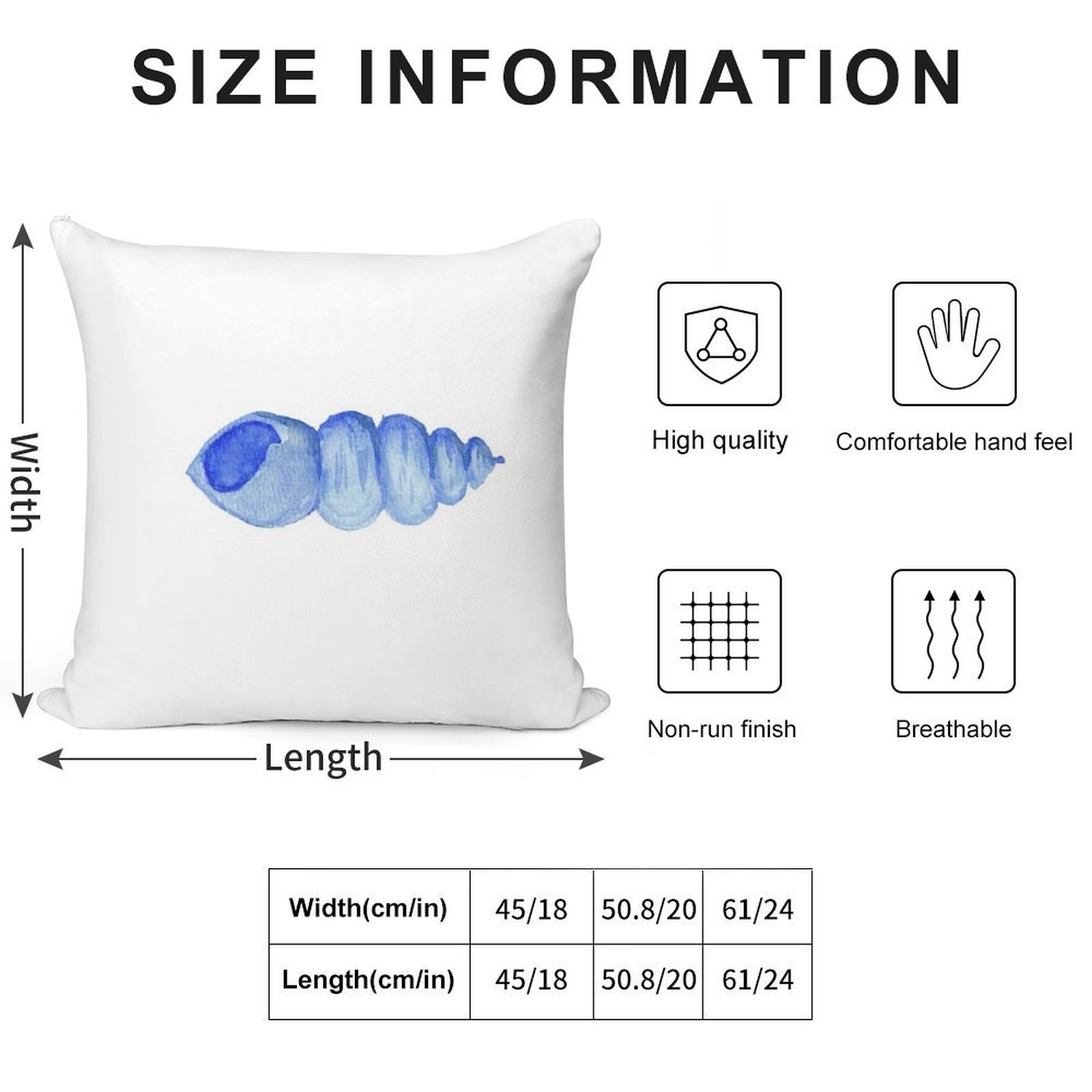 - Reinforced stitching along the edges prevents fraying and extends the life of your Watercolor Shell by Charlotte Canzano Pillowcase.
