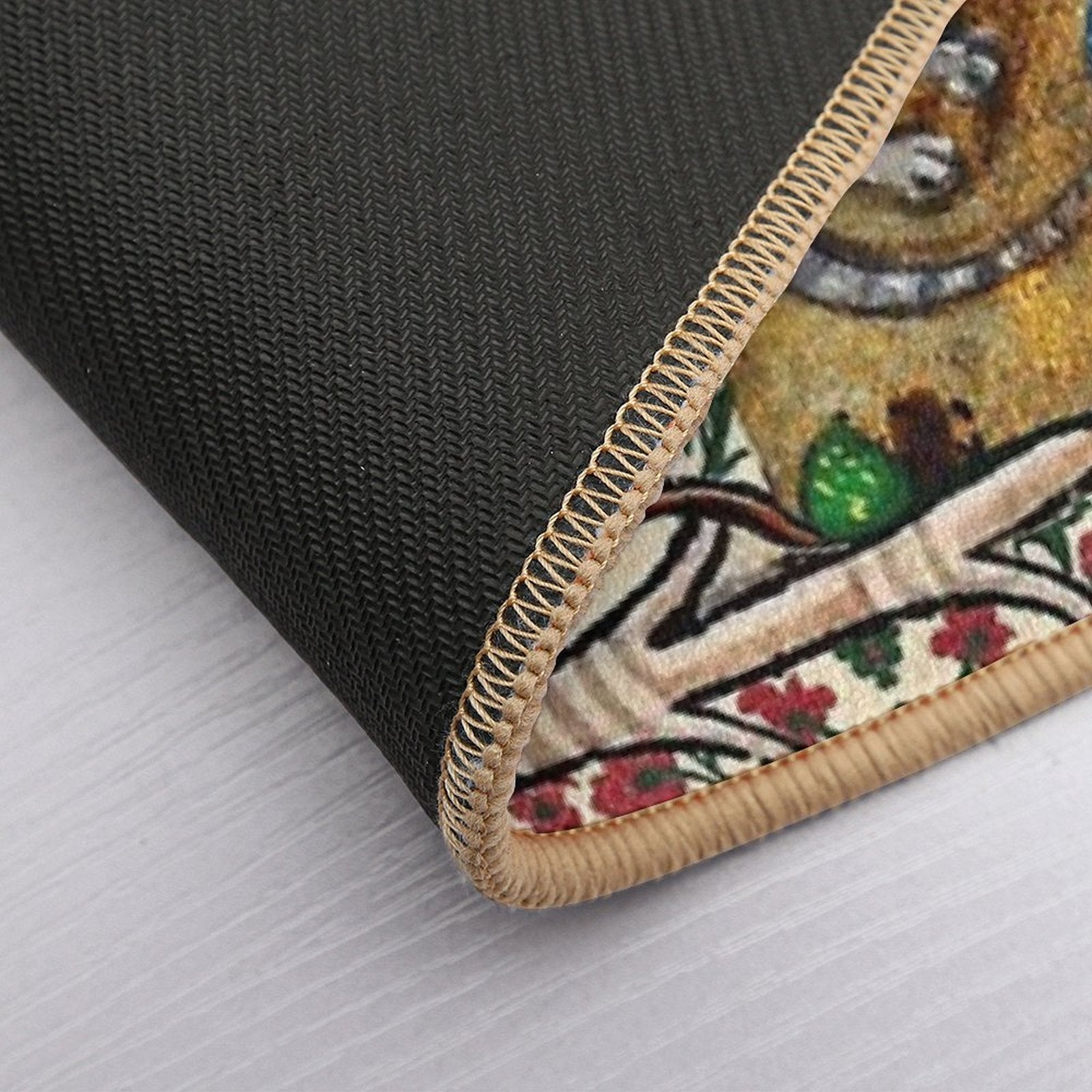 - Non-slip rubber backing grips floors securely, ideal for WEIRD MEDIEVAL BESTIARY MAKING MUSIC,Cat Playing Organ,Harpist Rabbit,Snail Cat Mat placements on tiles, wood, or marble.