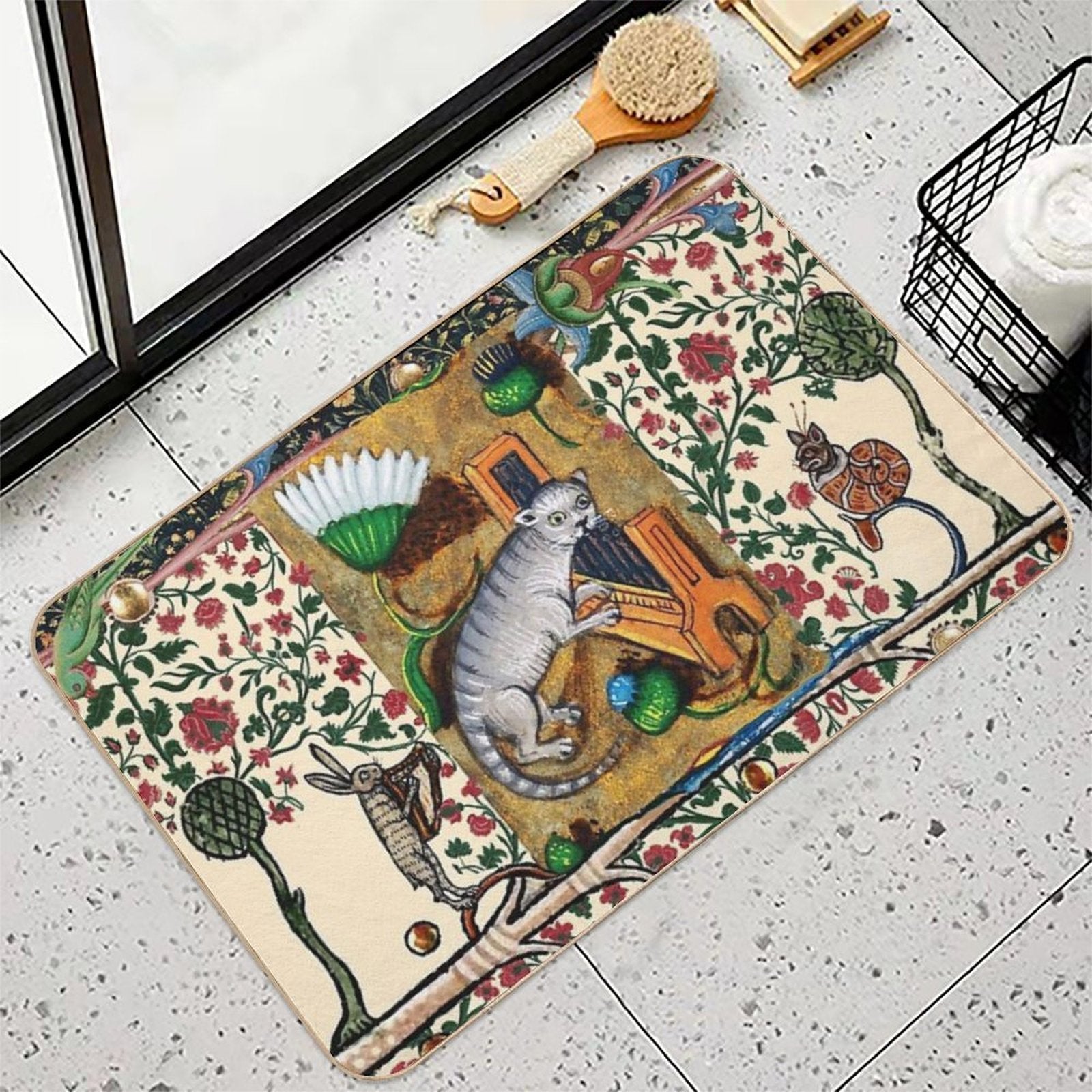 WEIRD MEDIEVAL BESTIARY MAKING MUSIC,Cat Playing Organ,Harpist Rabbit,Snail Cat Easy To Clean Bath Mat