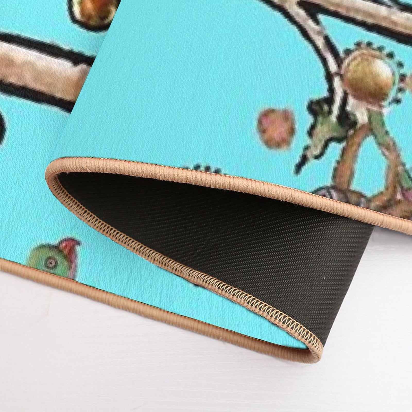 - Non-slip rubber backing grips floors securely, ideal for WEIRD MEDIEVAL BESTIARY MAKING MUSIC Violinist Lion,Hare,Snail Cat in Blue by Bulgan Lumini Mat placements on tiles, wood, or marble.