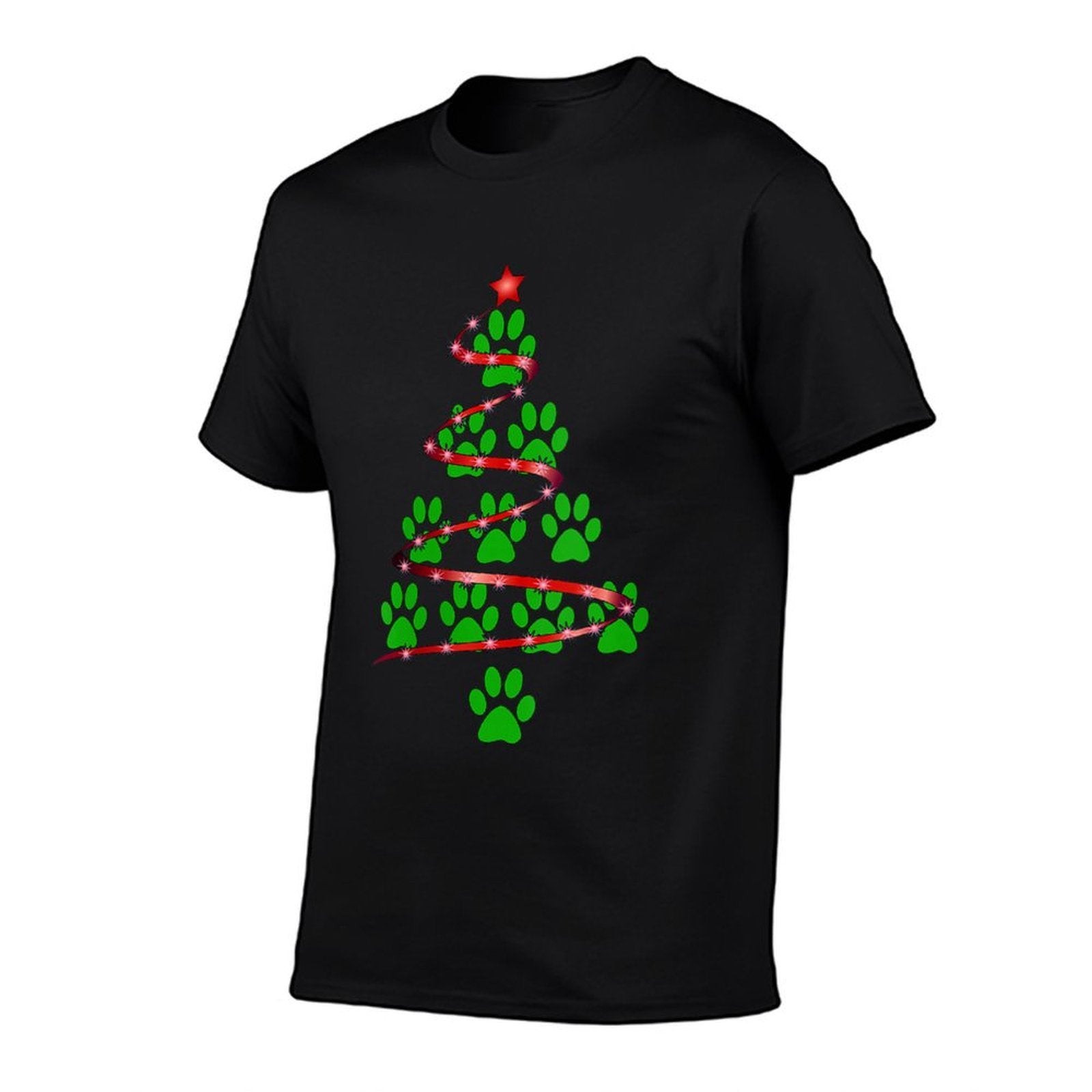 Womens Dog Paws Print Christmas Tree for Dog Lovers Summer-ready Fabric T-Shirt