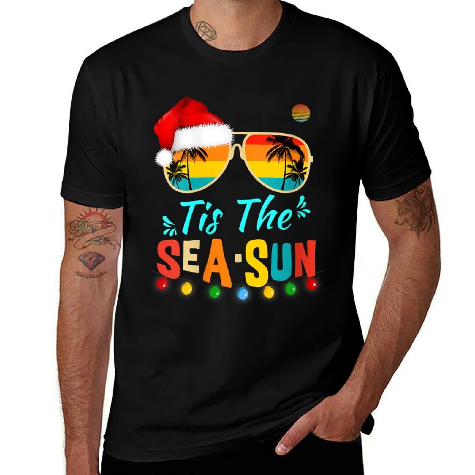 - Avoid bleach to preserve the Womens Tis The Sea Sun Santa Beach Summer Christmas In July Summer T-shirt’s bold graphics and cotton integrity.