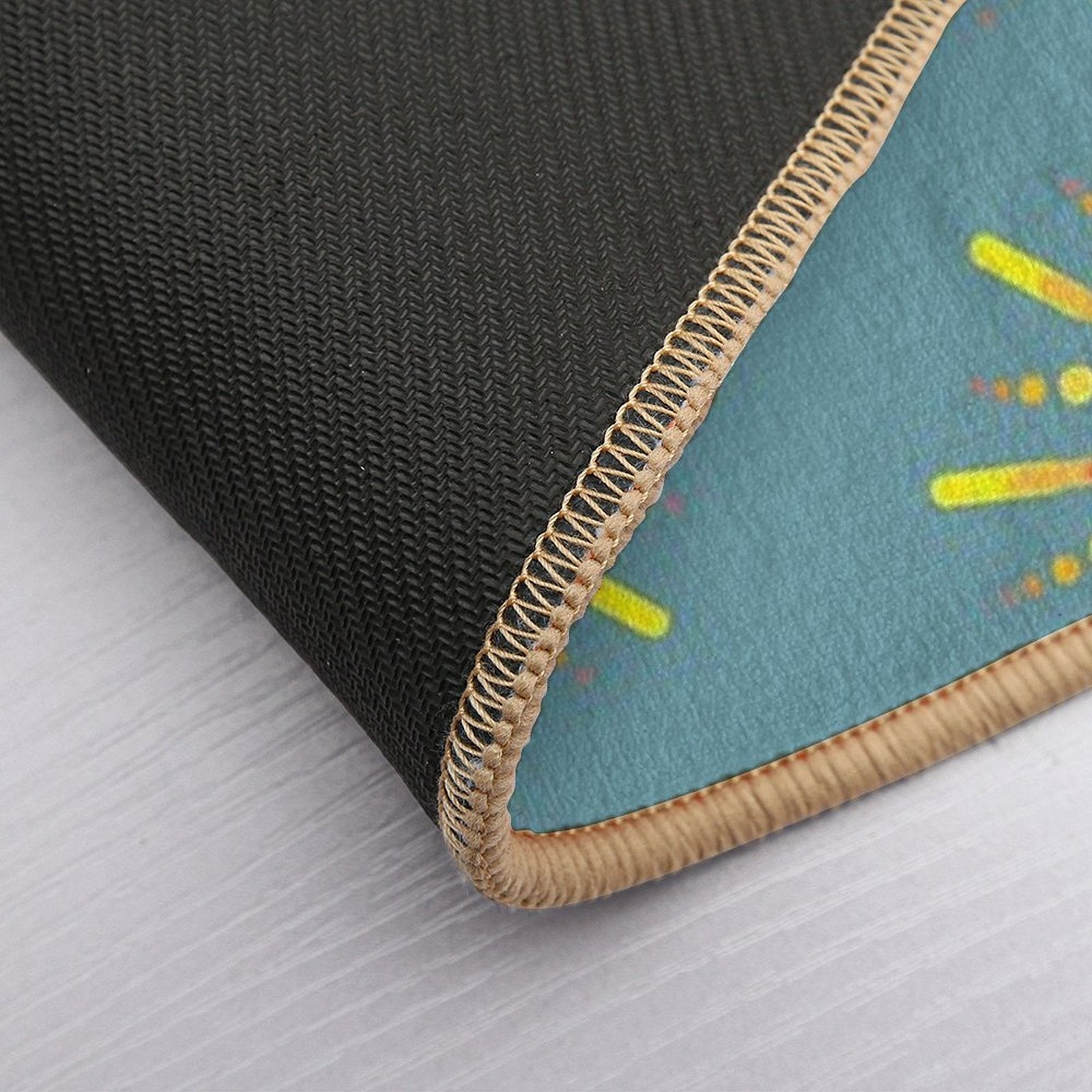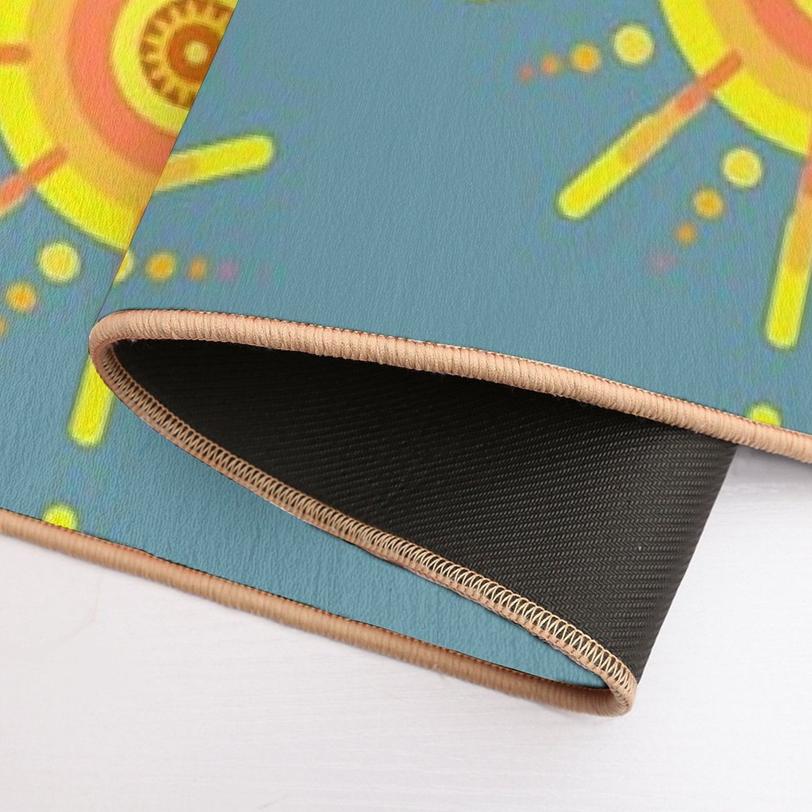 - Non-slip rubber backing grips floors securely, ideal for Yellow Sun Pattern Retro Style Design Blue Mat placements on tiles, wood, or marble.